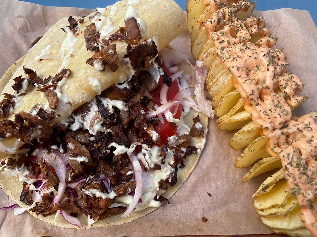 Great food , amazing flavours, very friendly friendly staff. Had space gyros , coleslaw , spiral potato and a lovely mince filled wrap ( can’t remember the name ). Also was blown away by the snickers tart!