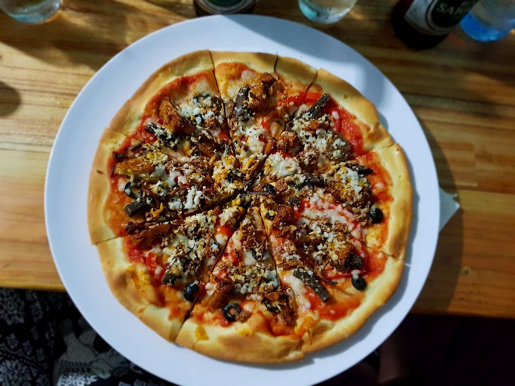 Pizza with homemade cheese (comes in 2 sizes, this is the small one) ❤…