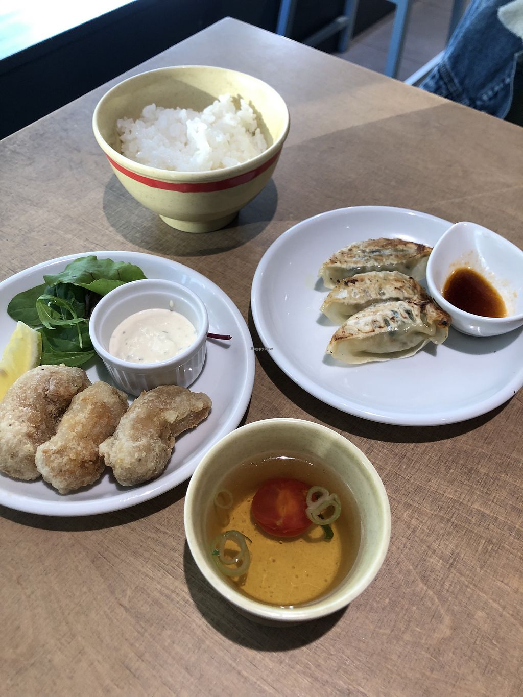 Gyoza and grilled soy meat