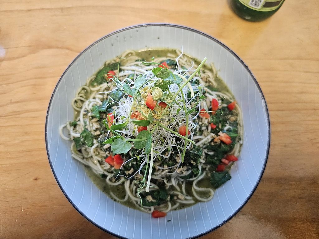 The fellow who served us had such a sweet calm vibe, and after a long drive it was utterly wonderful to have such a carefully prepared meal. I had vegan 'chicken' made from peas with seasonal veggies and rice, everything was absolutely brilliant, ate every last bit. My partner had tempeh with slightly different veggies and rice, and he also loved it enough to eat every morsel.