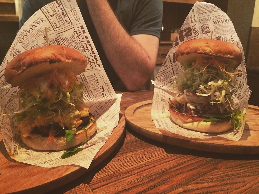 The Vegan Burg. Bean Patty, Salad, Avo and Bolognese Sauce.