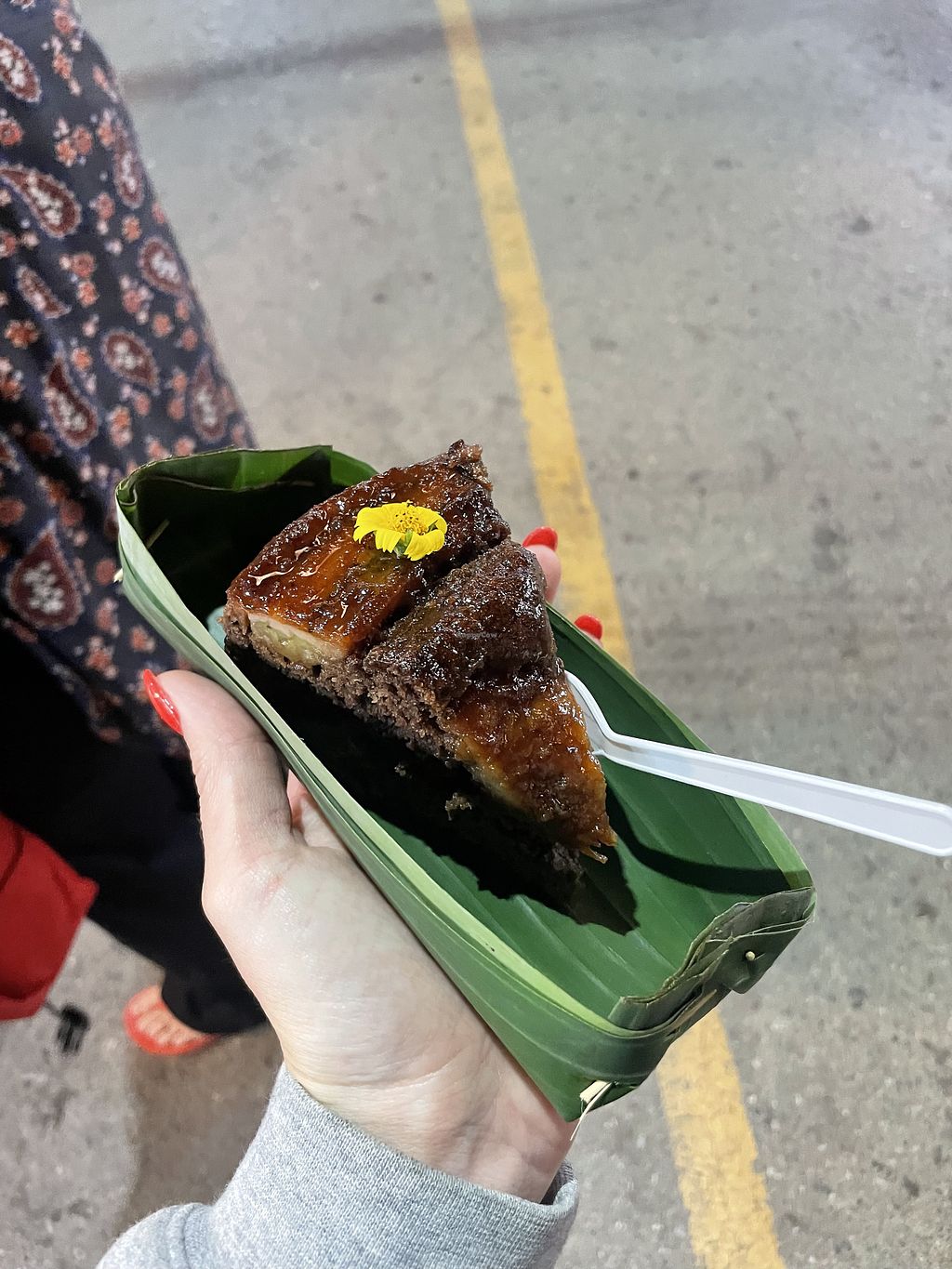 I only tried the choc banana but it’s was really yummy and moist plus the lady is really sweet and she makes cute little bowls out of banana leaf for the slices! Bonus points for sustainability from me