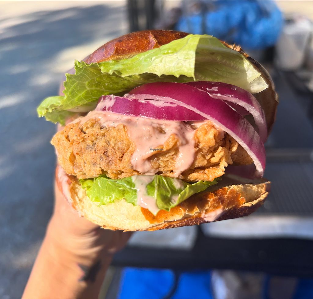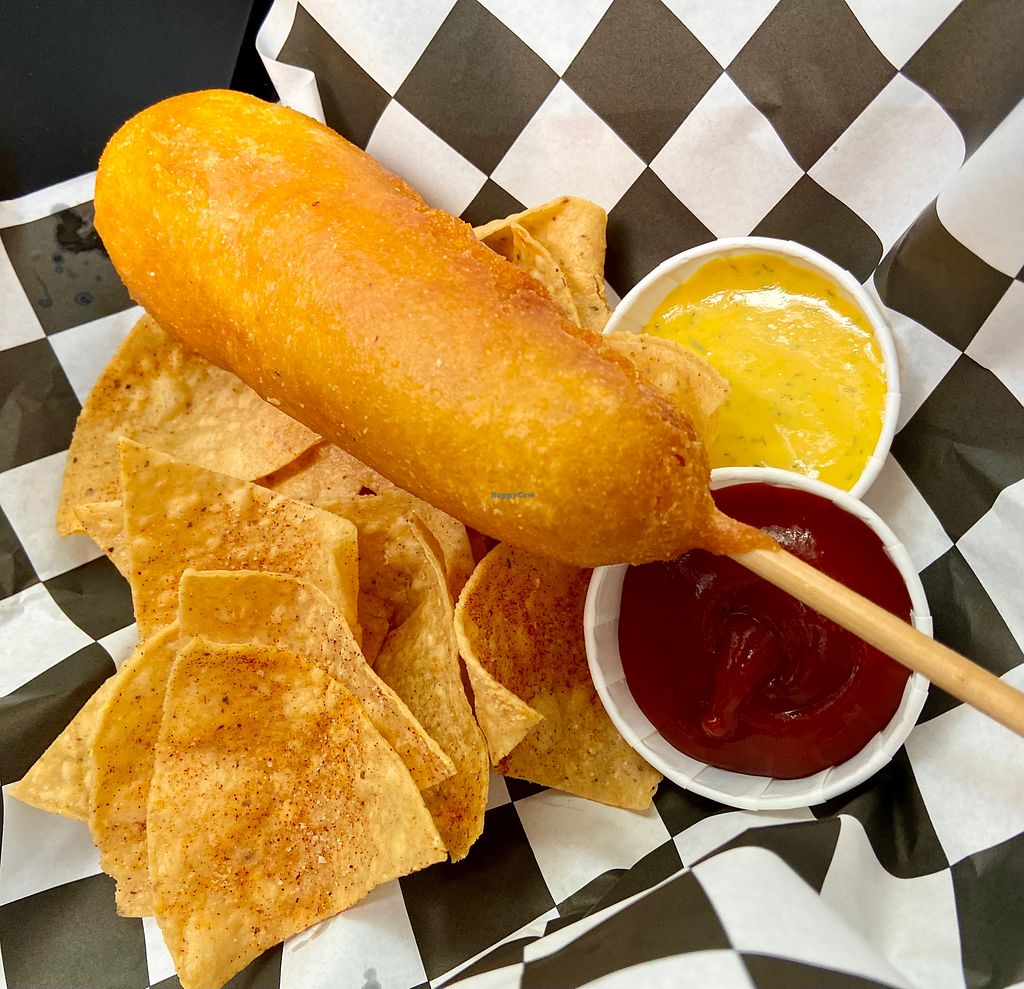 Read moreWe use all organic ingredients in our batter and all organic produce and sauces. Quality of the food we feed the community is most important to us and it does tend to make it a little more expensive for us. Also donating 15% to animal sanctuaries is our contribution to our mission to ending animal Cruelty.