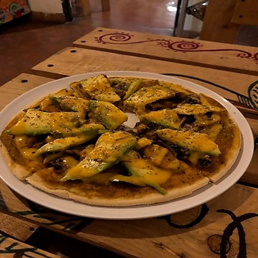 Pizza vegan Nota: La base de la Pizza es queso cheddar vegano y sals…