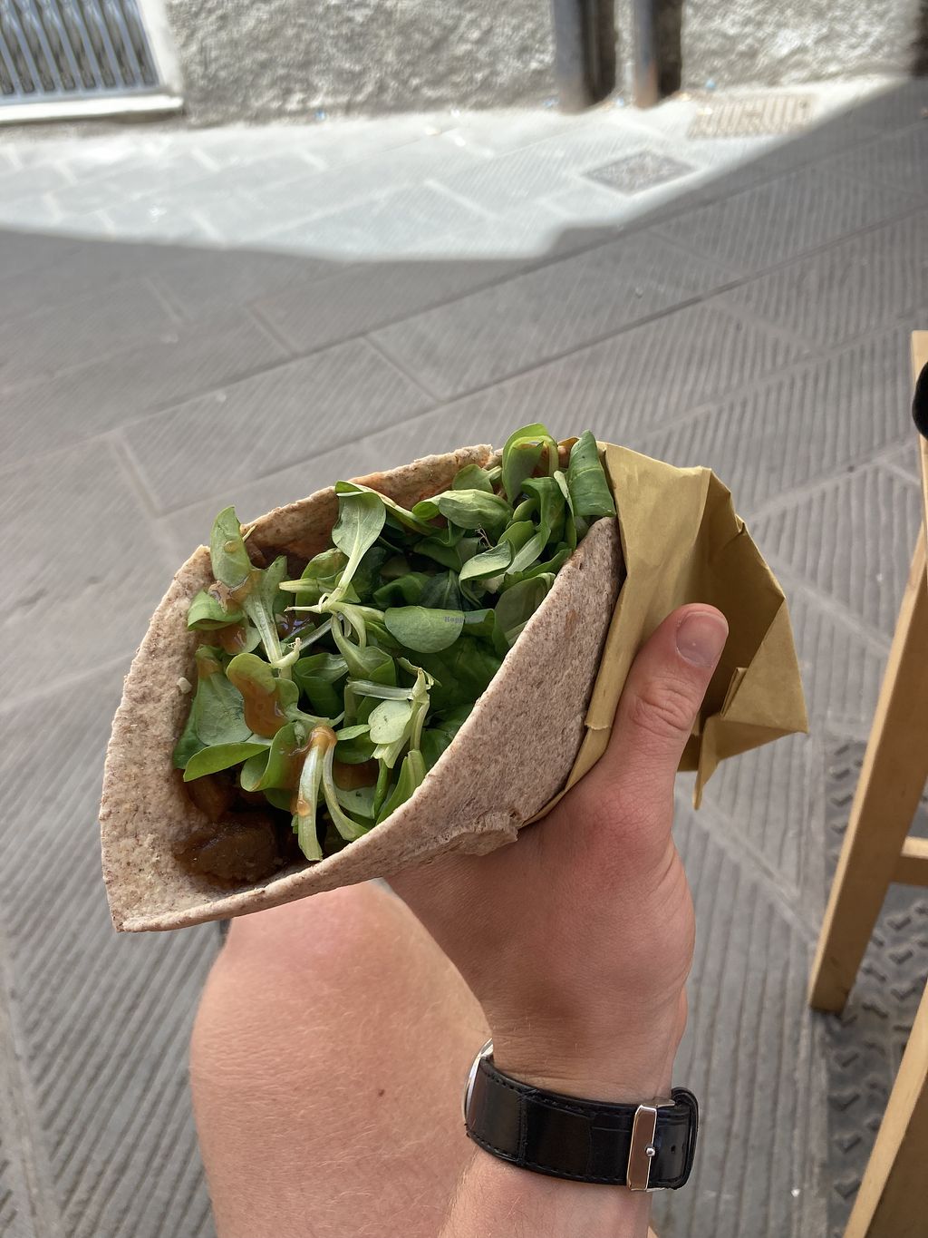 Has the vegan seitan kebab with spicy ketchup and was absolutely insan…