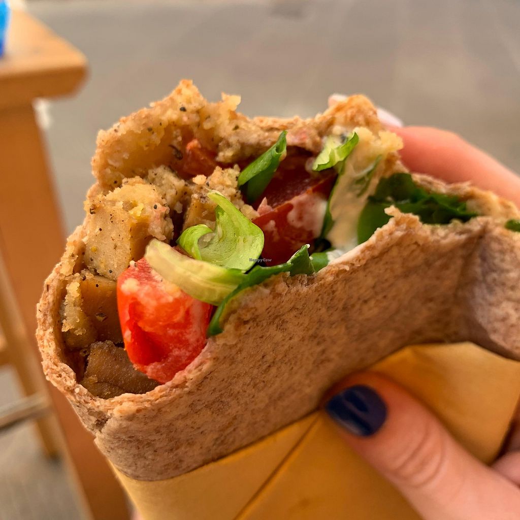 Very small completely vegan cafe , loads of options - we had wraps which were absolutely delicious. You are given lots of options of types of bread / wraps, spreads such as hummus or mustard, veggies, salads etc. A very friendly and pleasant owner. Very small, only room inside for 2 to sit on high stools so better to take out. Excellent value for money. Would definitely recommend this place.
