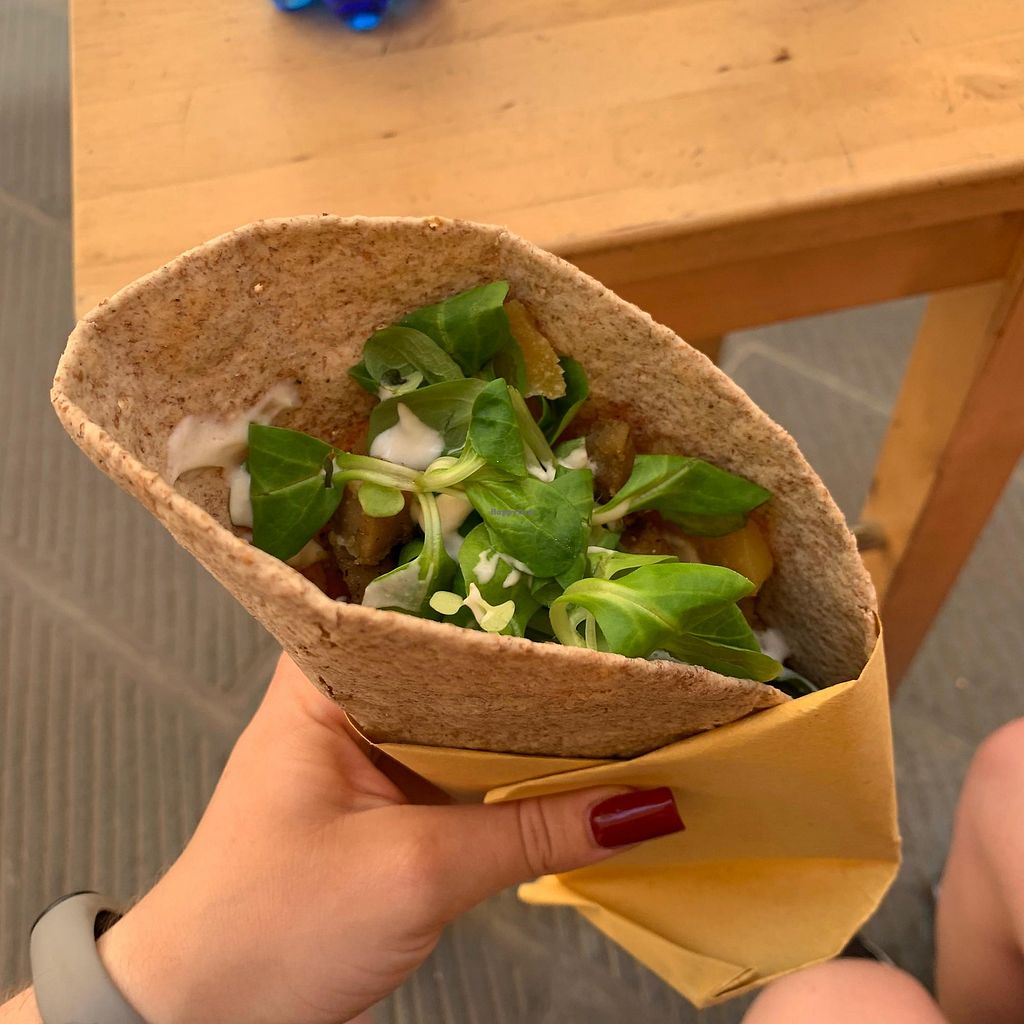 Had a sandwich with a tofu and pumpkin burger and salad and hot sauce. Was delicious and the owner was incredibly friendly and spoke perfect English which always helps as a tourist. Most of the ingredients are not made fresh but this means they have a wide variety of options and are quick to make your meal.