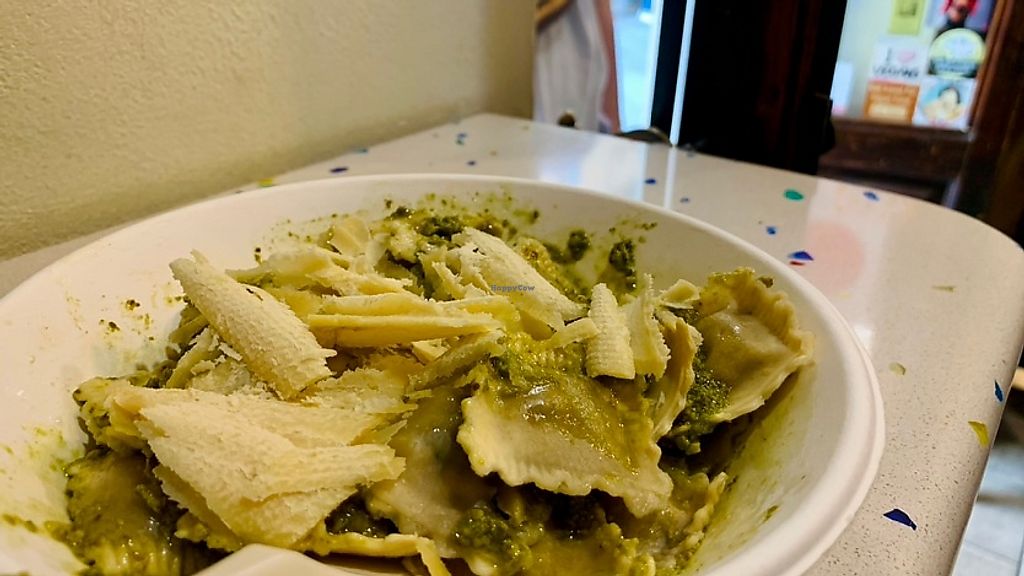 I had the spinach ravioli al’pesto verde, everything comes from the store. Okay, the owner prepares it with care but it still is reheated food.