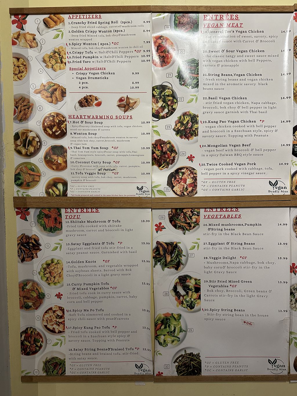 menu on wall