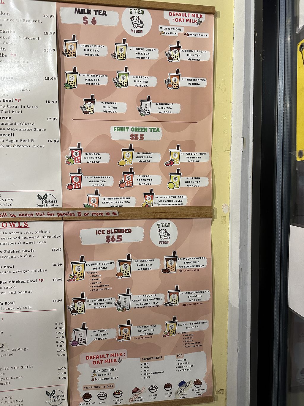 Boba shop menu