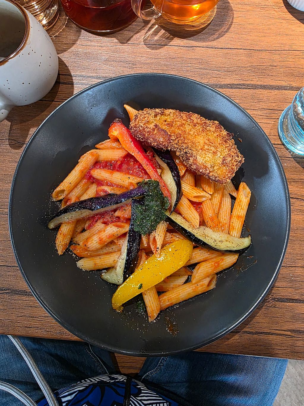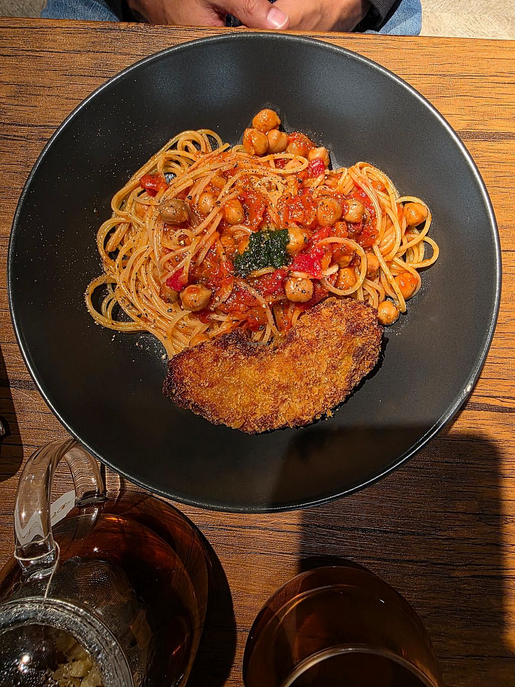 I had the chickpea pasta and the eggplant arrabiata with the vegan cutlet. In hindsight, I'd order the chickpea supplement instead of the cutlet which was a bit bland.