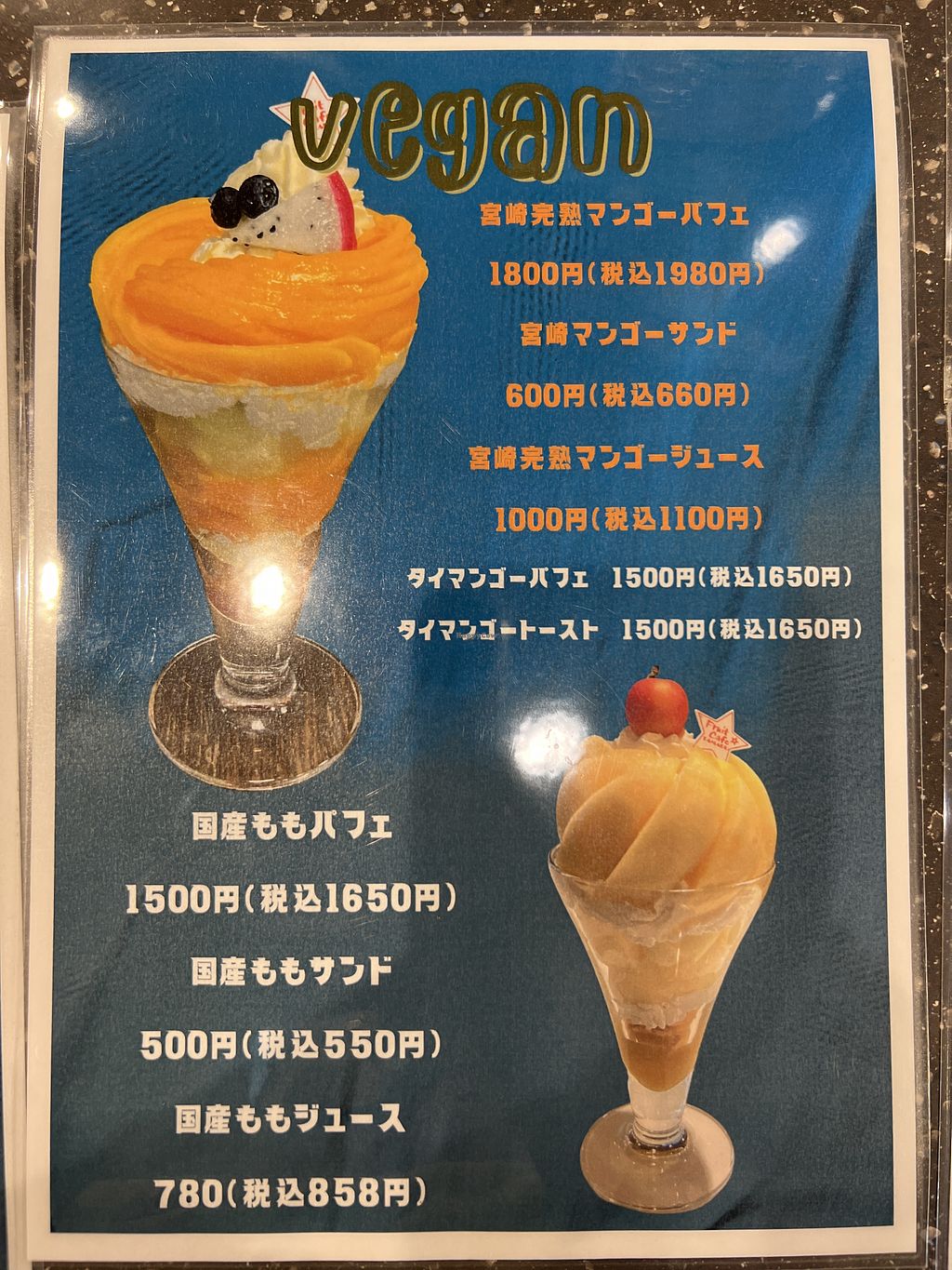 Vegan menu