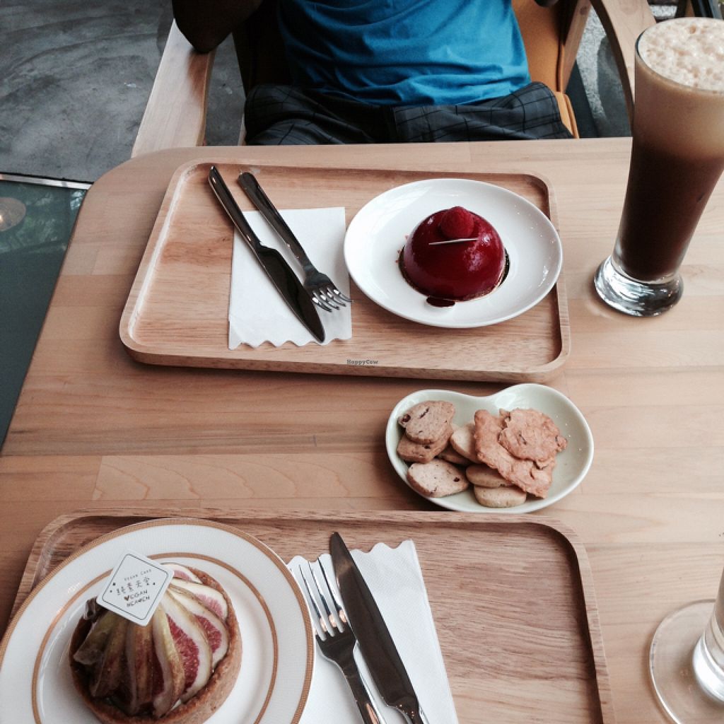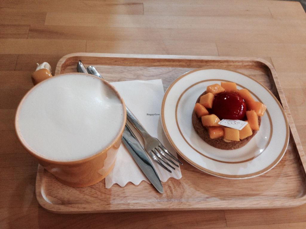 Afternoon tea perfection-mango raspberry tart and a frothy smooth ging…