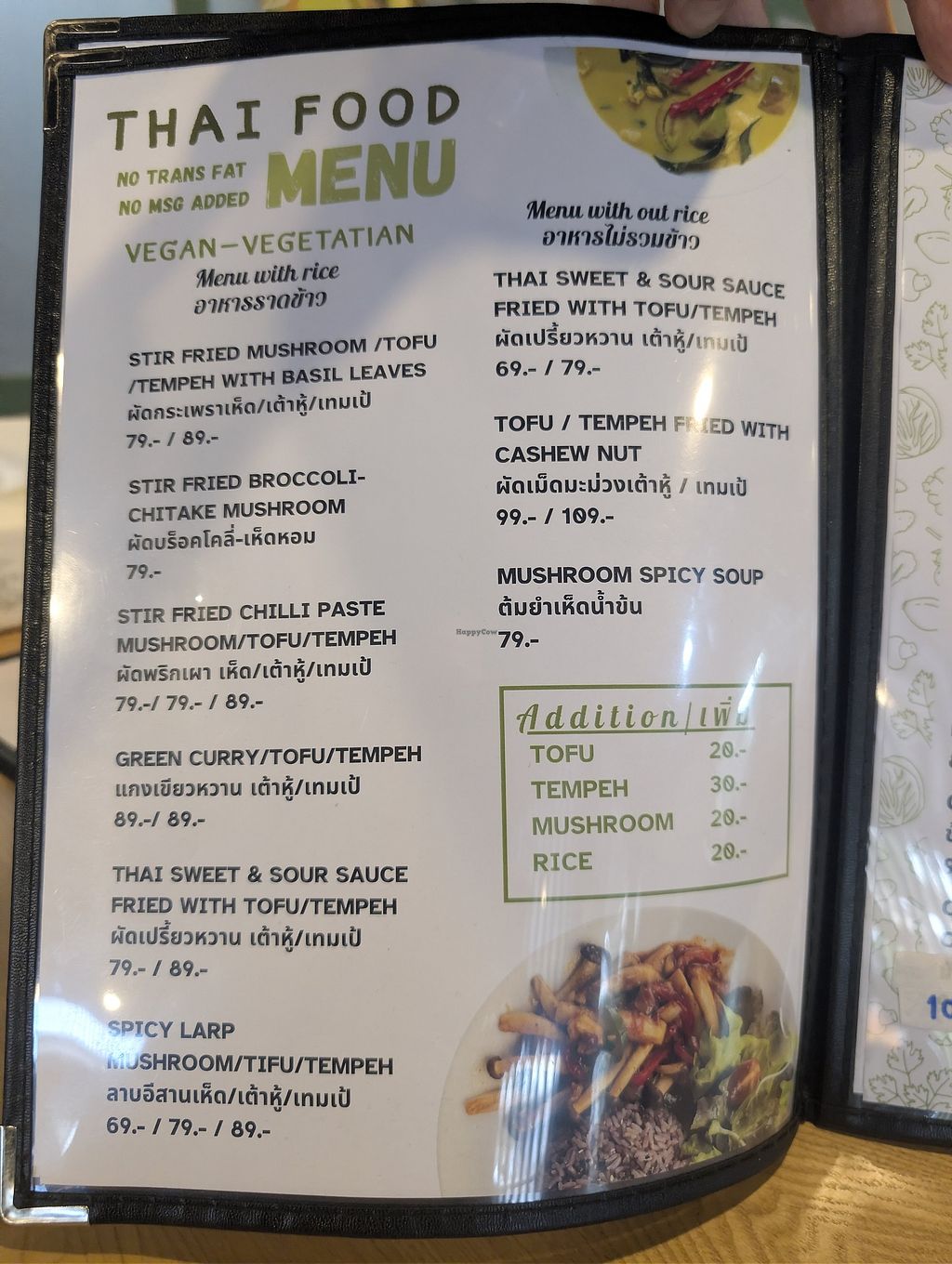 Fully vegan Thai restaurant serving mainly Thai dishes but also dishes like nachos and others. Open Mon-Sun 8:30am-8:00pm.