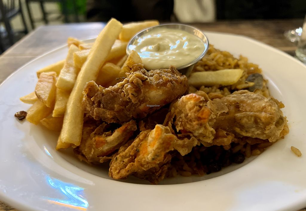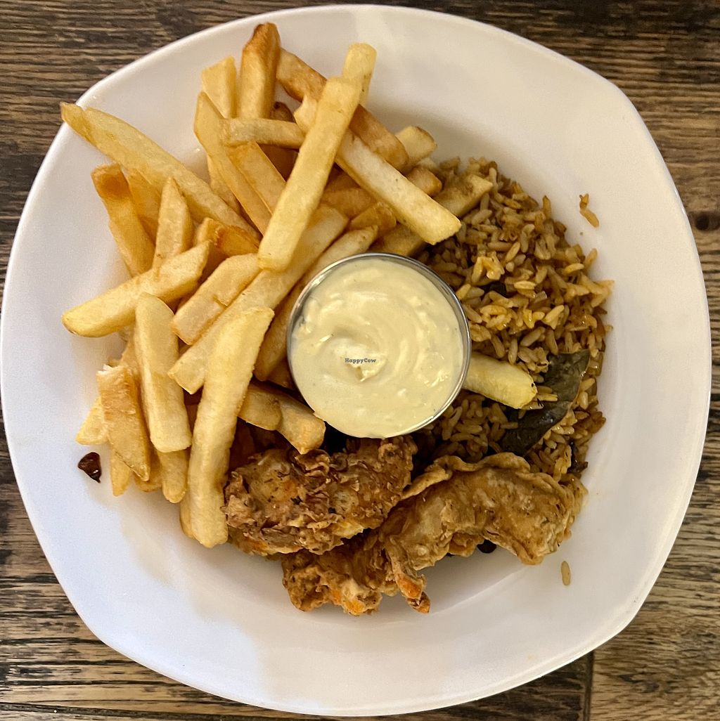 Bed stuy fry shrimp with fries and rice