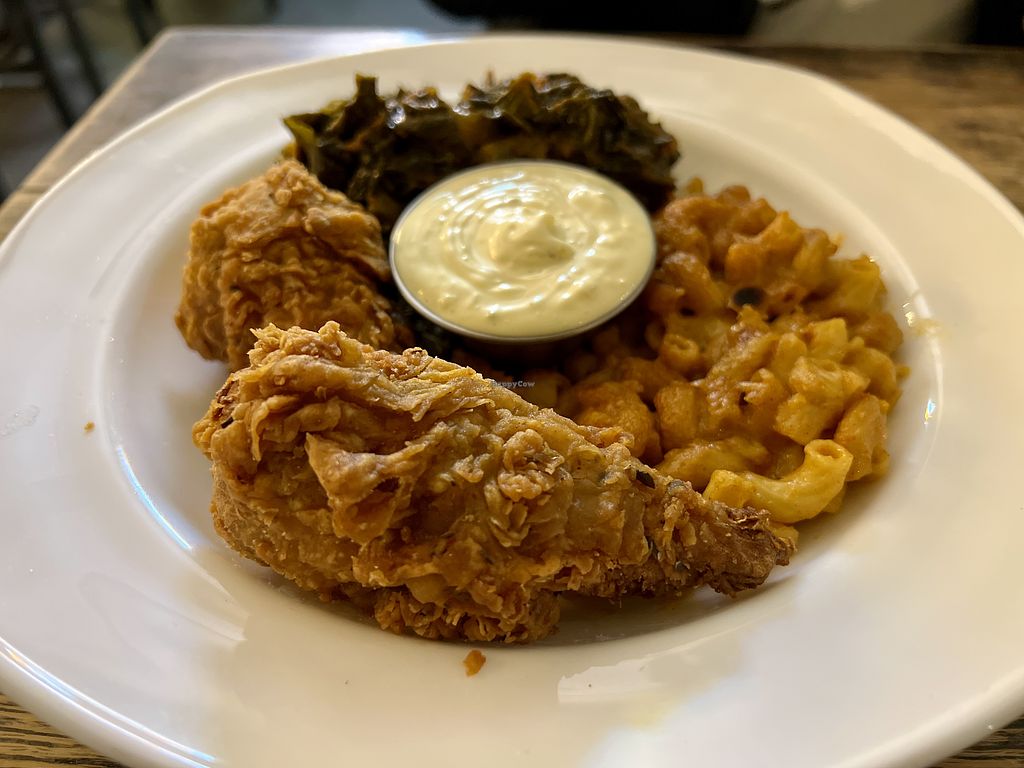 Chix with mac and cheese and collard greens