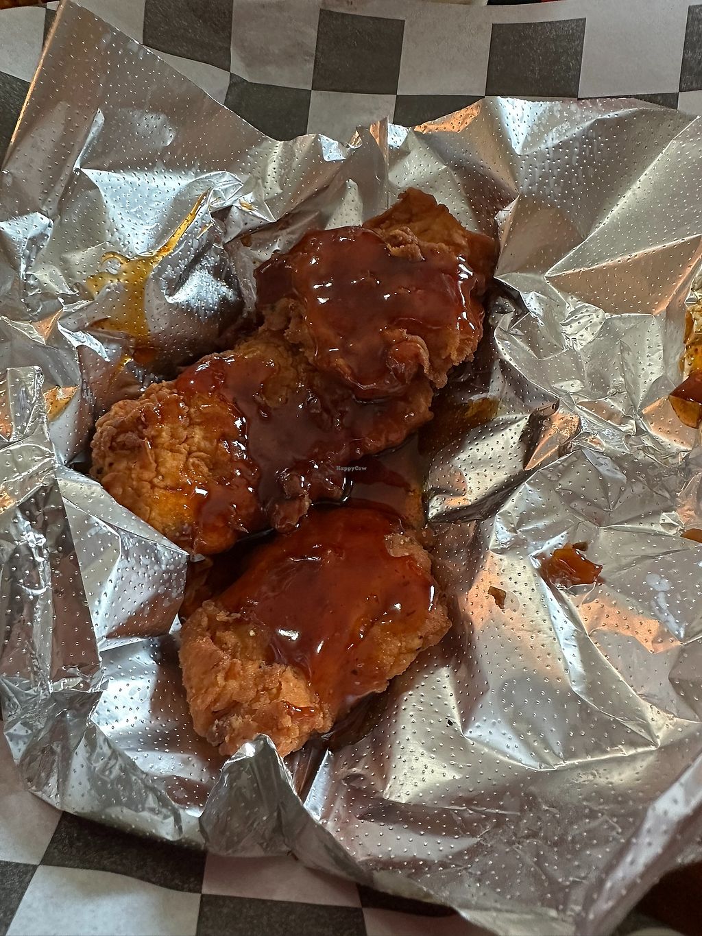 The boneless “chicken teriyaki” wings - 10/10 the best damn vegan wings I’ve ever had. I challenge you to find another. Sticky, sweet and hearty “chicken” meat inside. We were floored.