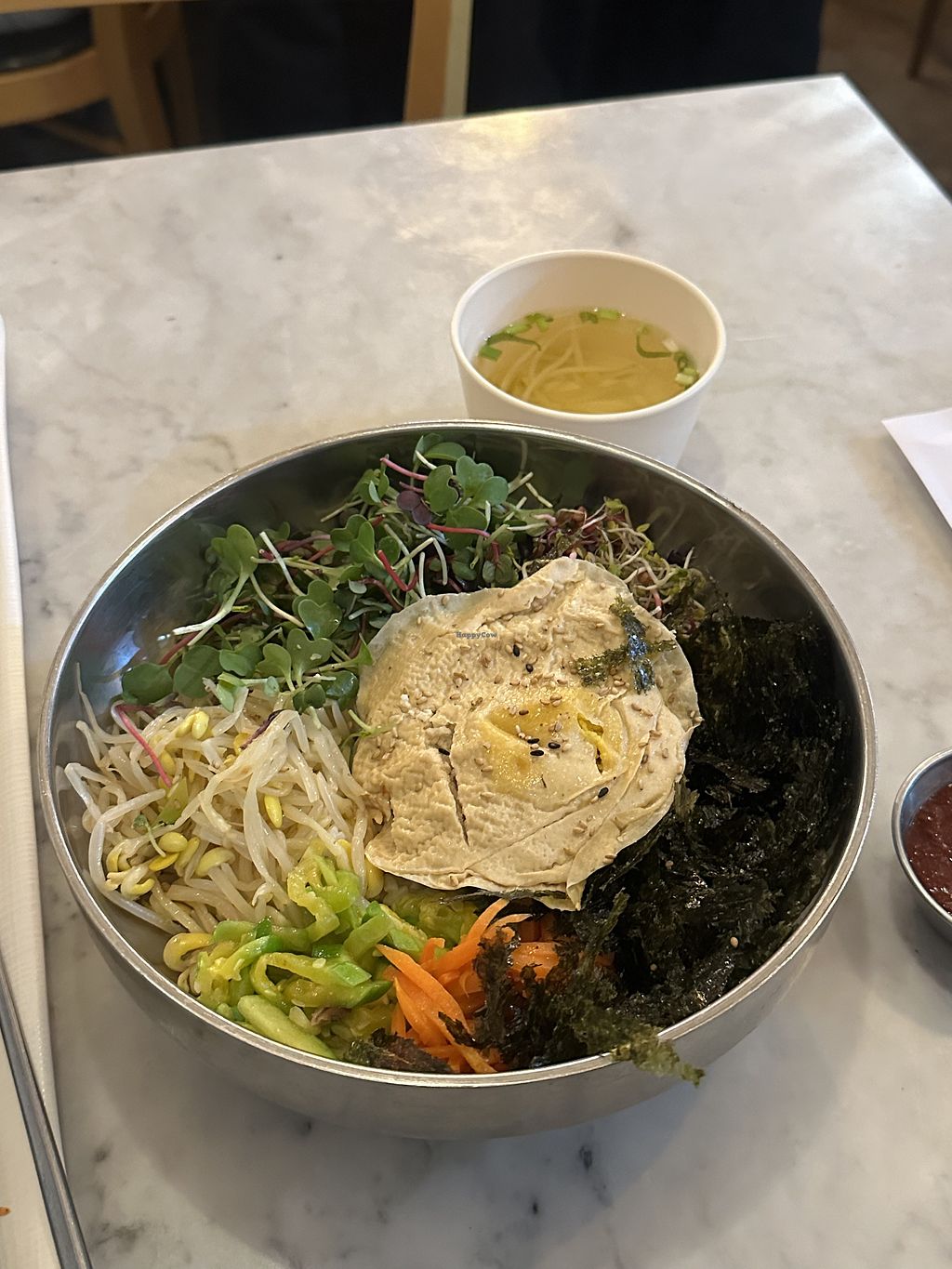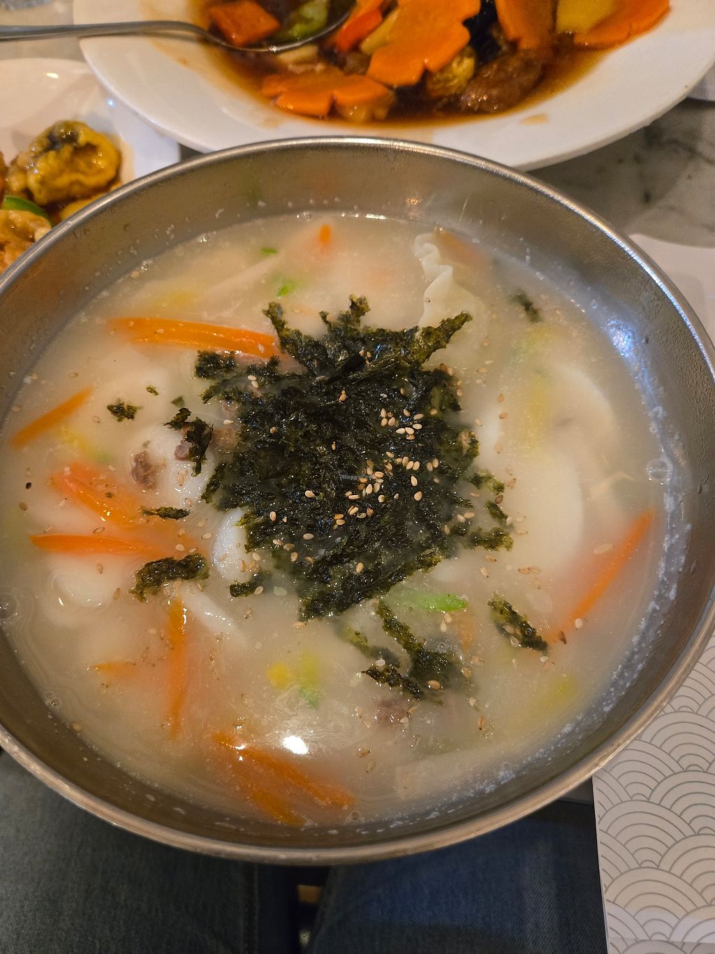 However, the rice cake soup was very good and also the vegan bulgogi menu. I would love to come again to try their other dishes as well 🥰 definitely a place to go to for Korean vegan food