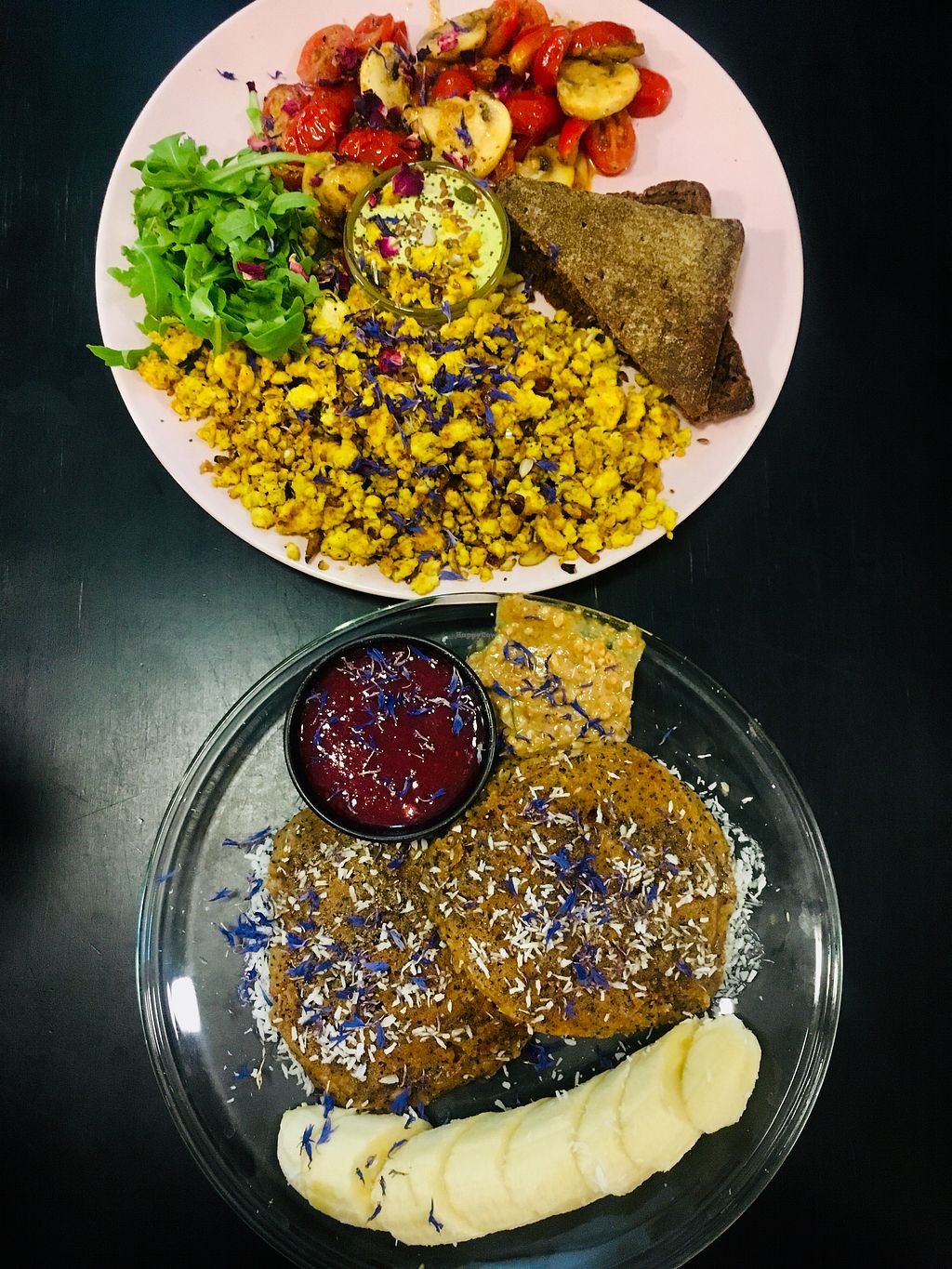 tofu scramble and peanut butter pancakes!