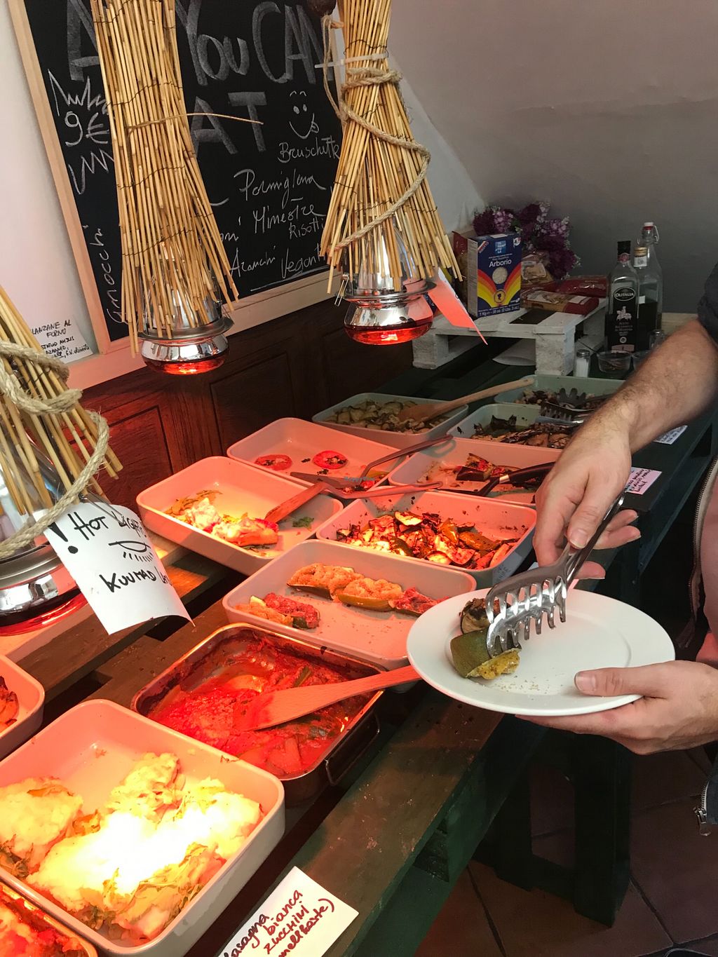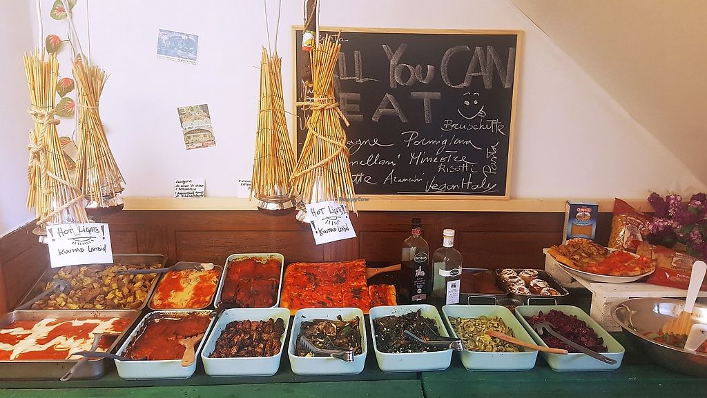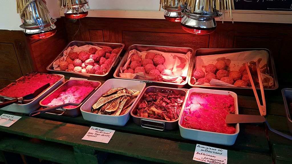 All vegan tasty, authentic Italian food. Many options on the buffet. In general quite simple when I was there. But the buffet options change daily. Really friendly and nice owners!