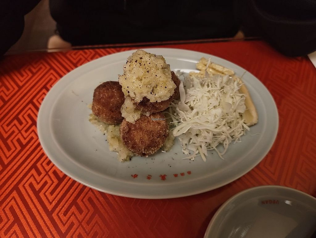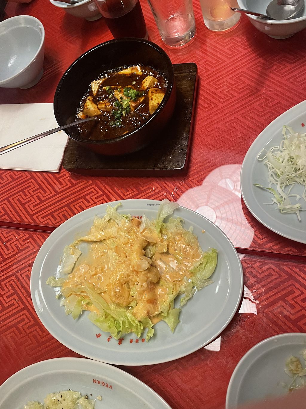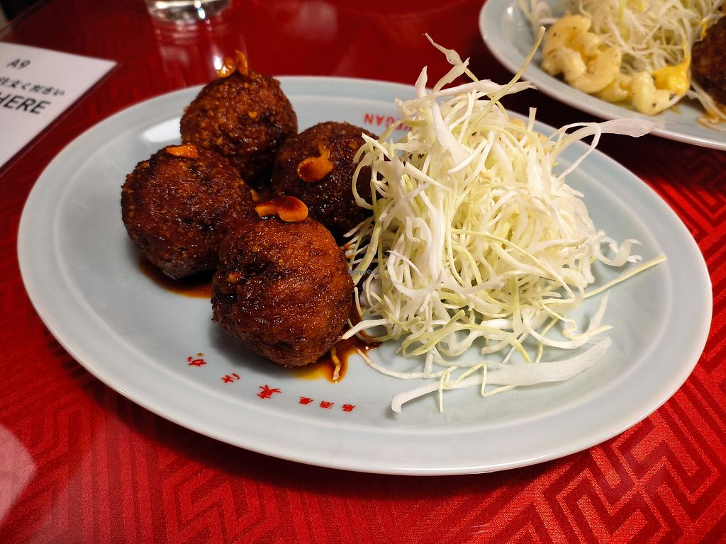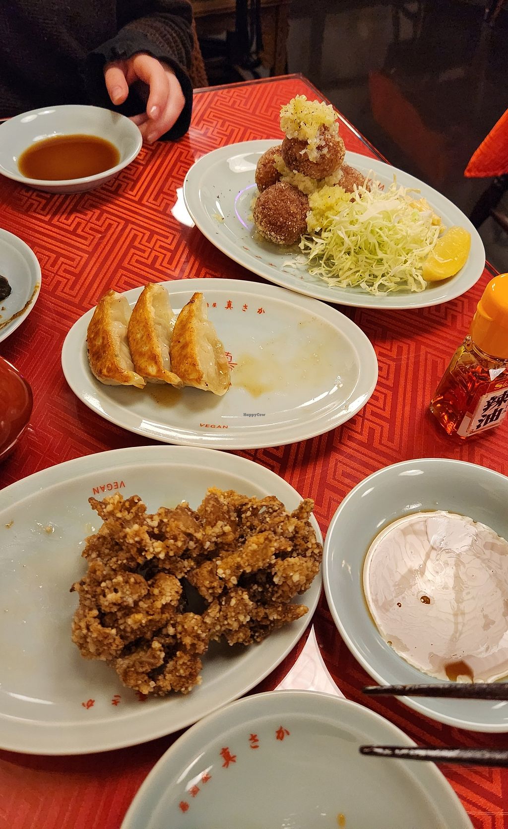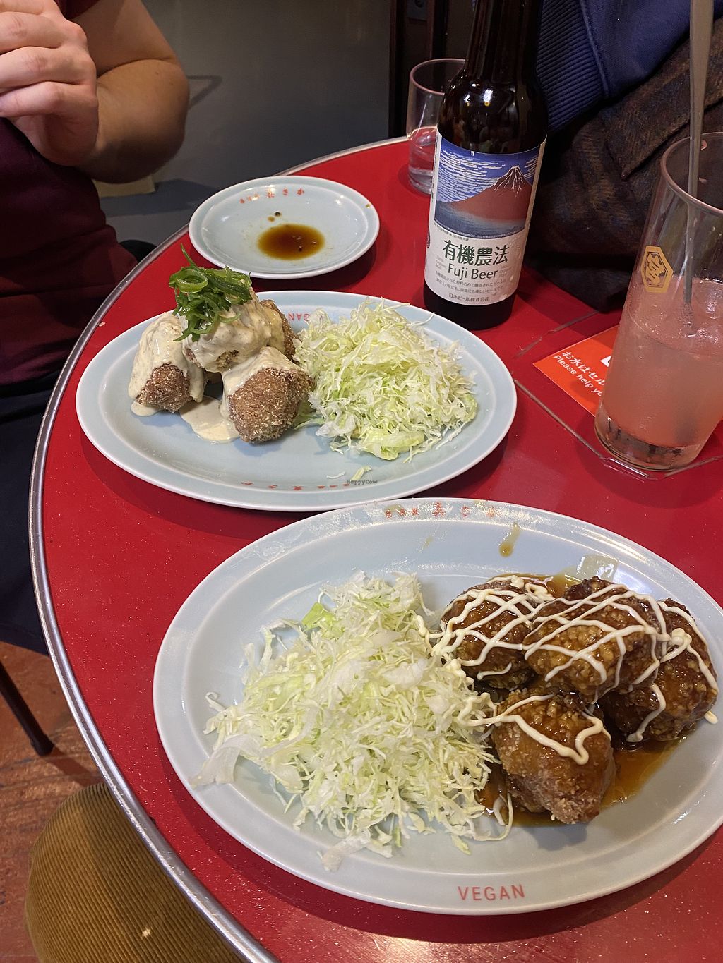 Karaage with Sichuan sauce, edamame and pickled mustard greens with ch…
