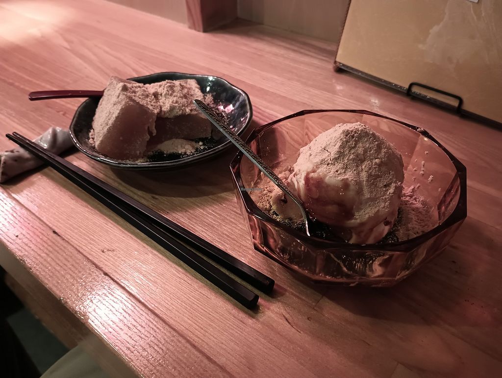 Warabimochi and ice cream.