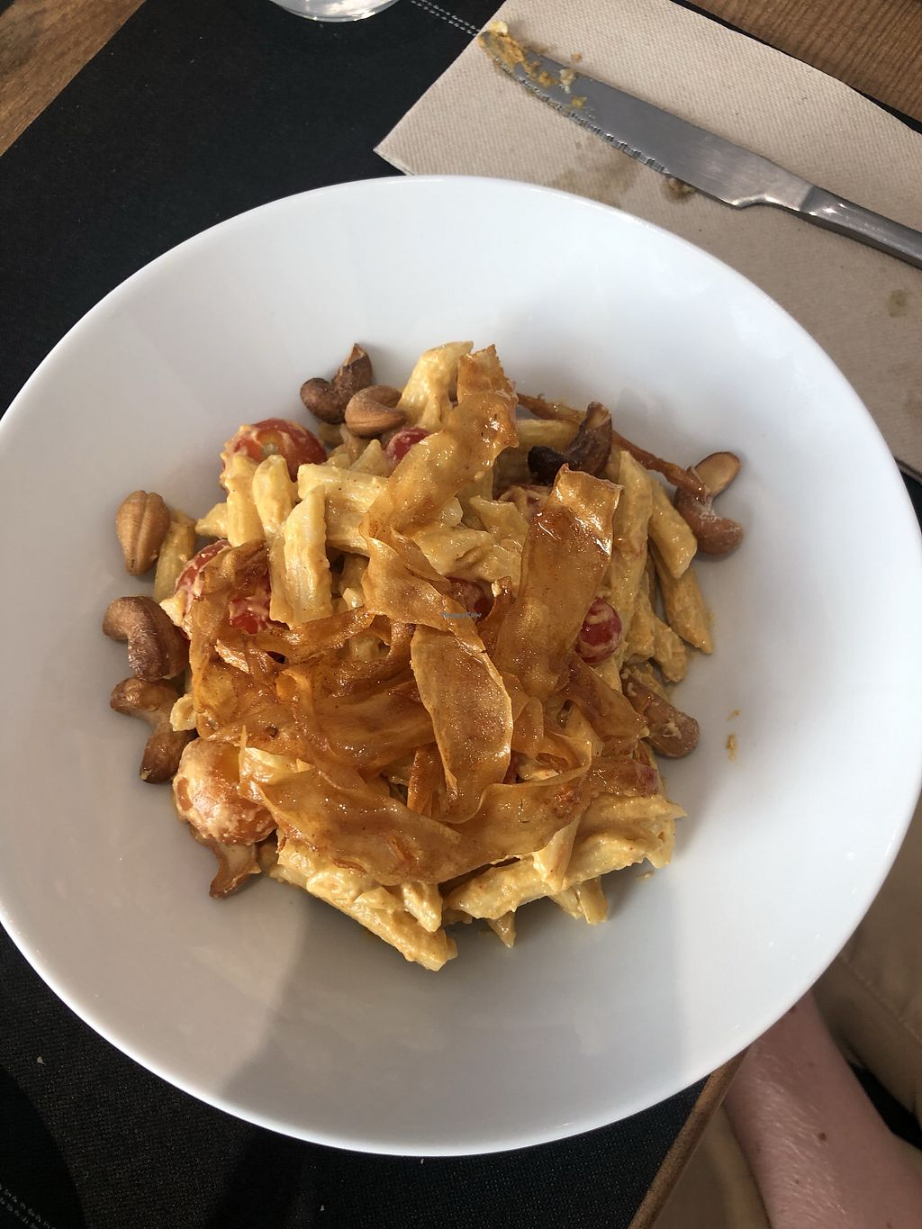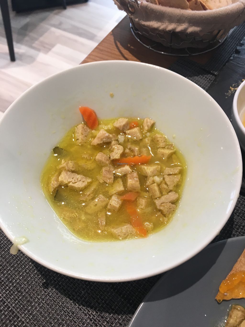 The starters were nice (“mozzarella cheese” with tomato and polenta chips) but the mains were not so tasty as I expected. The curry didn’t have any sauce and didn’t taste like a real curry. The tofu balls with tagliatelle were ok, but tasteless.