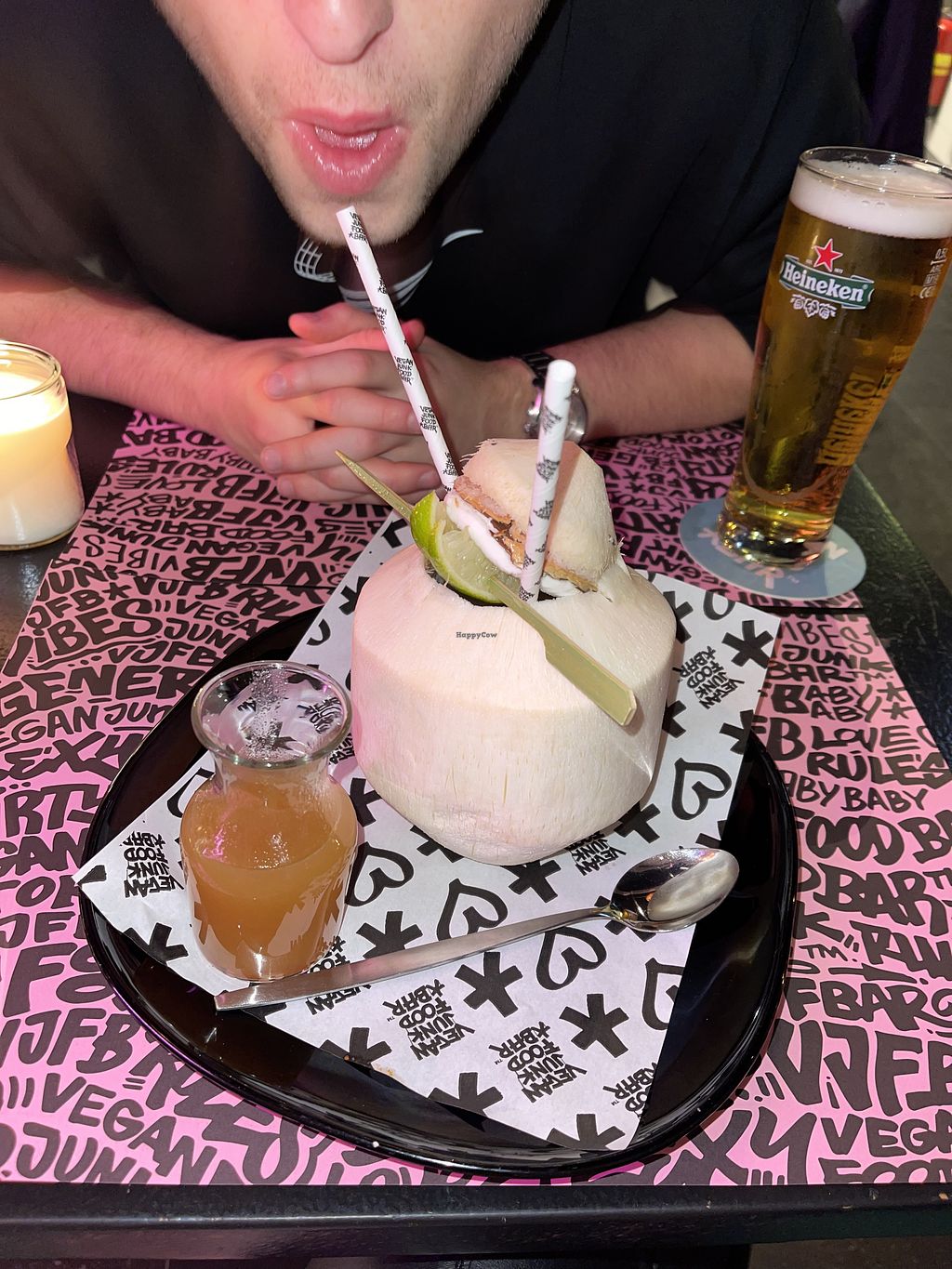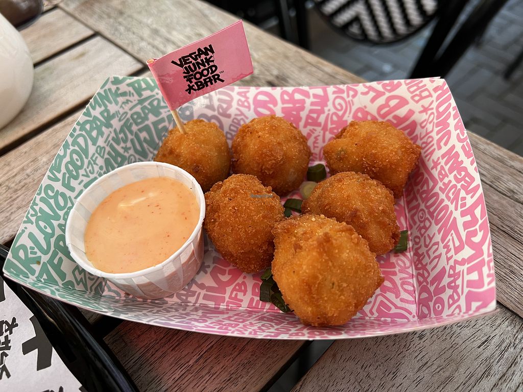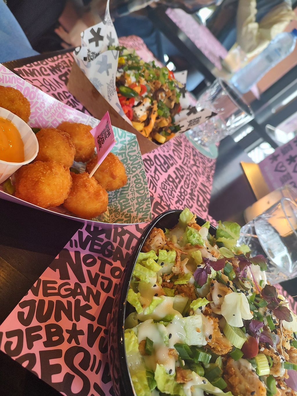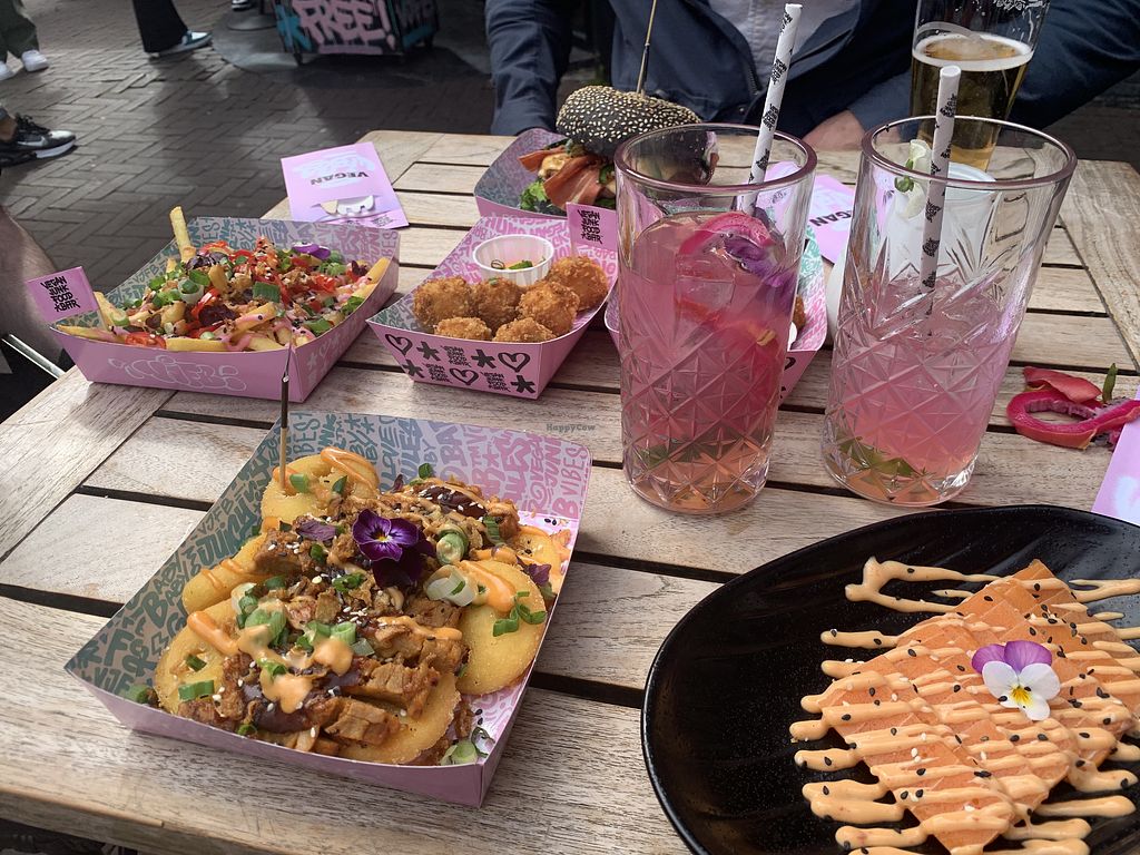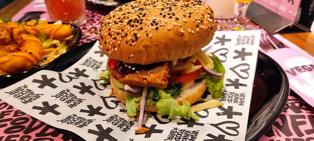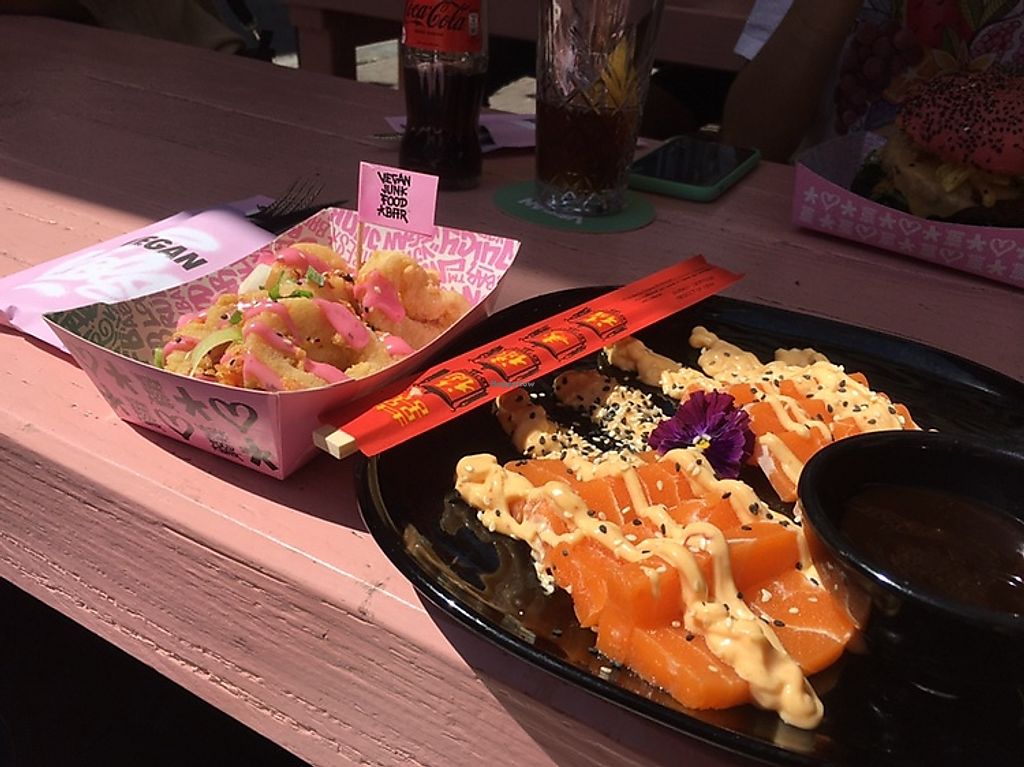 Black and pink bun burger, asian peanut butter balls, vegan wings (so …