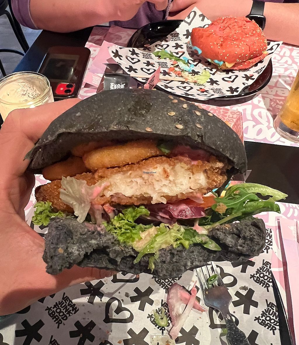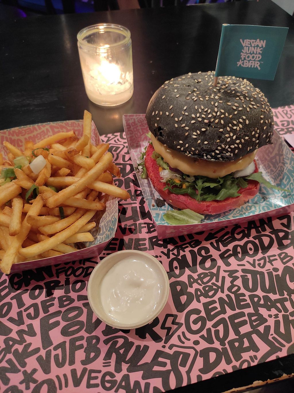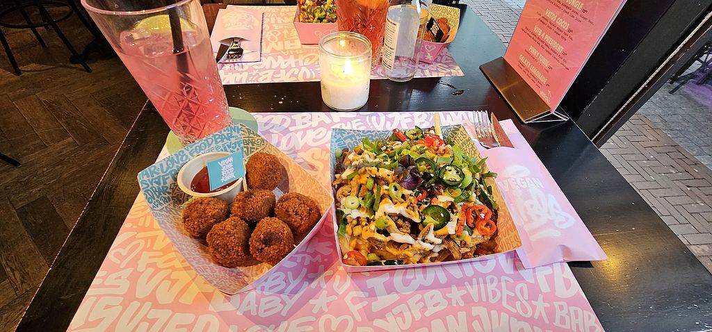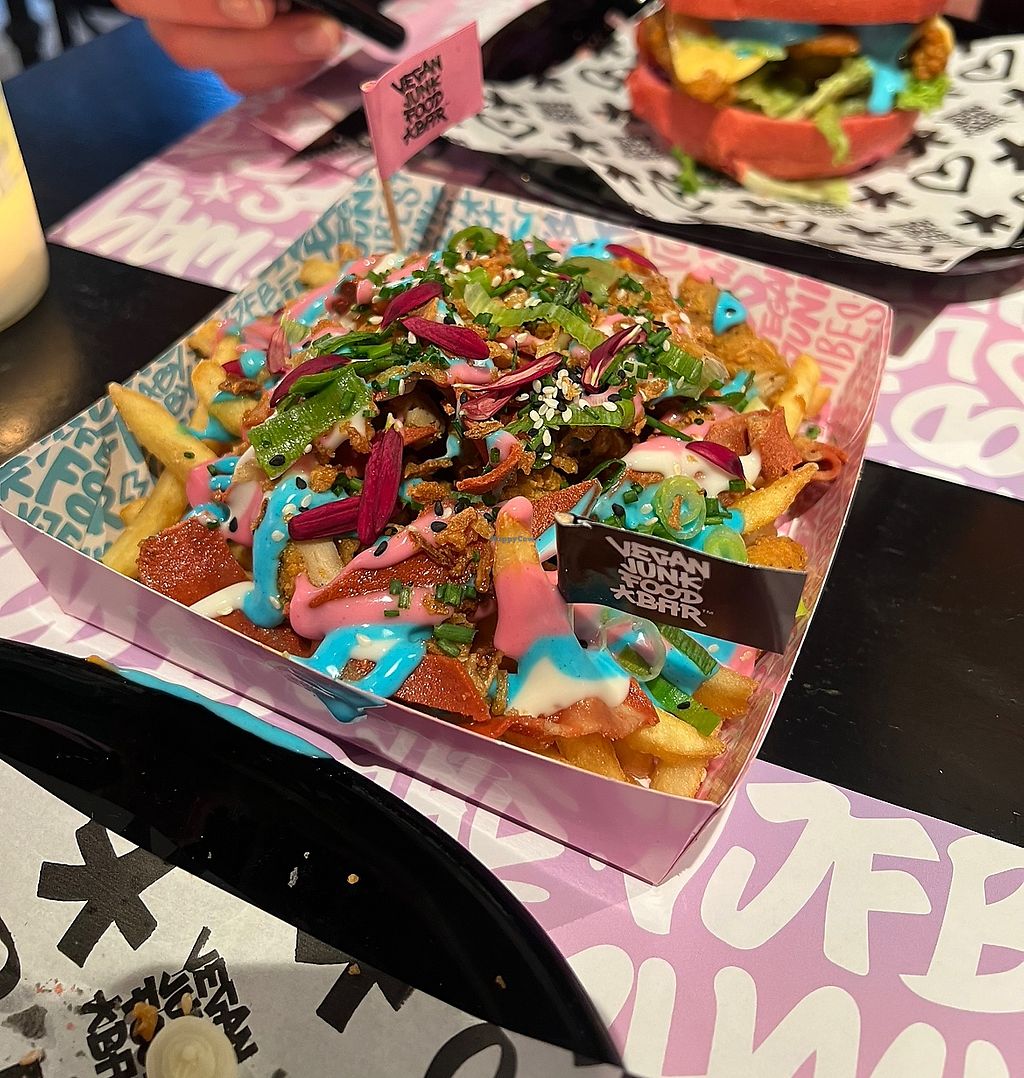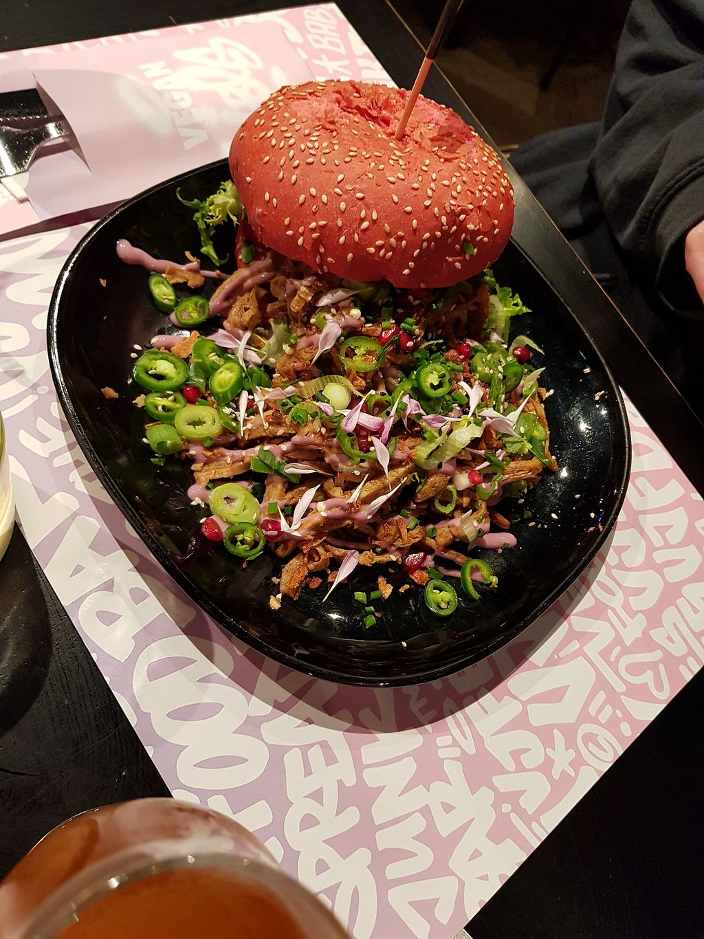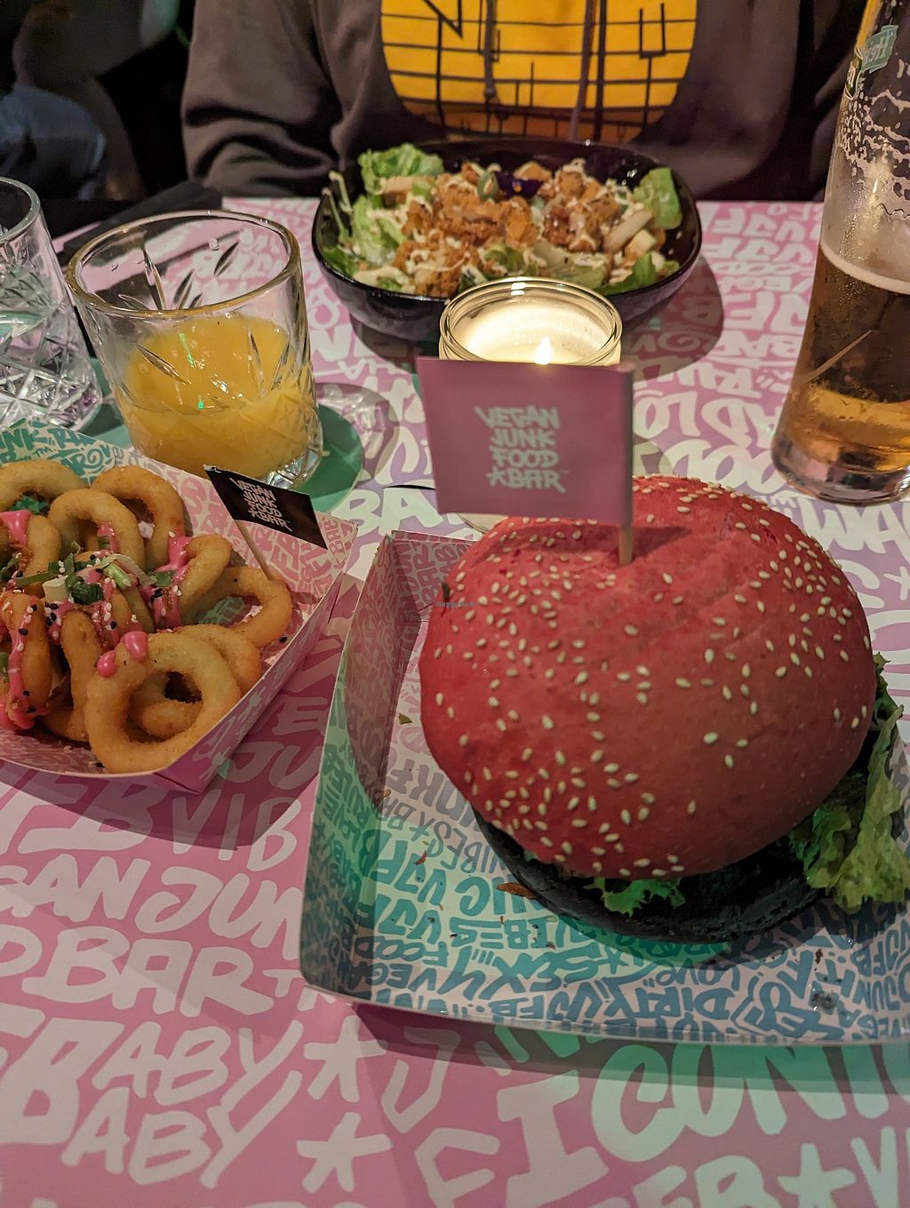 The pink garlic mayo on the onion rings - delicious #Veganuary