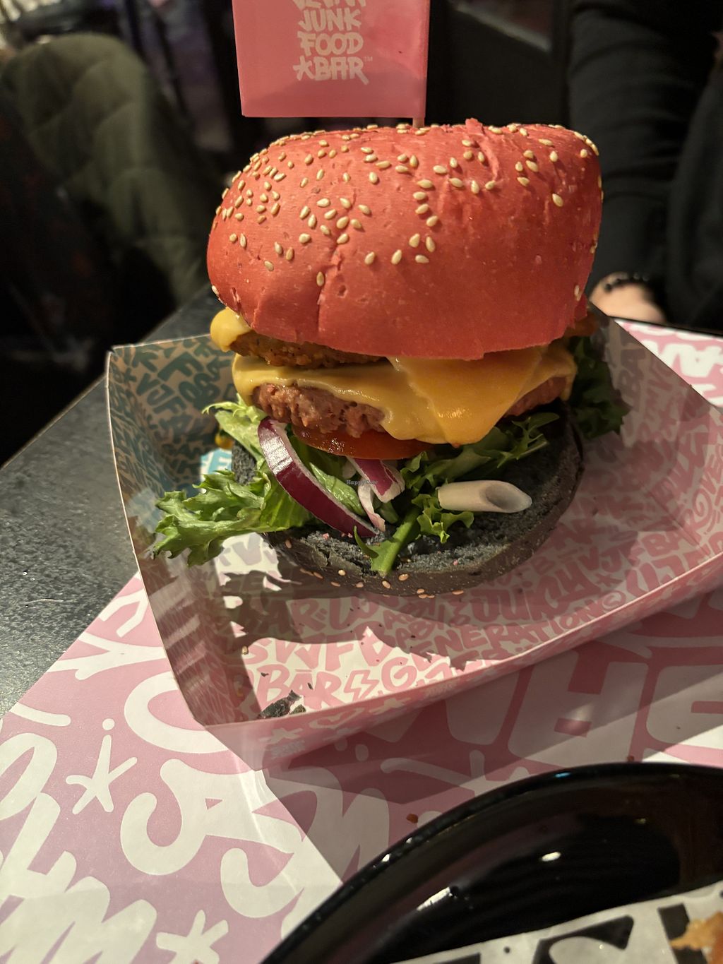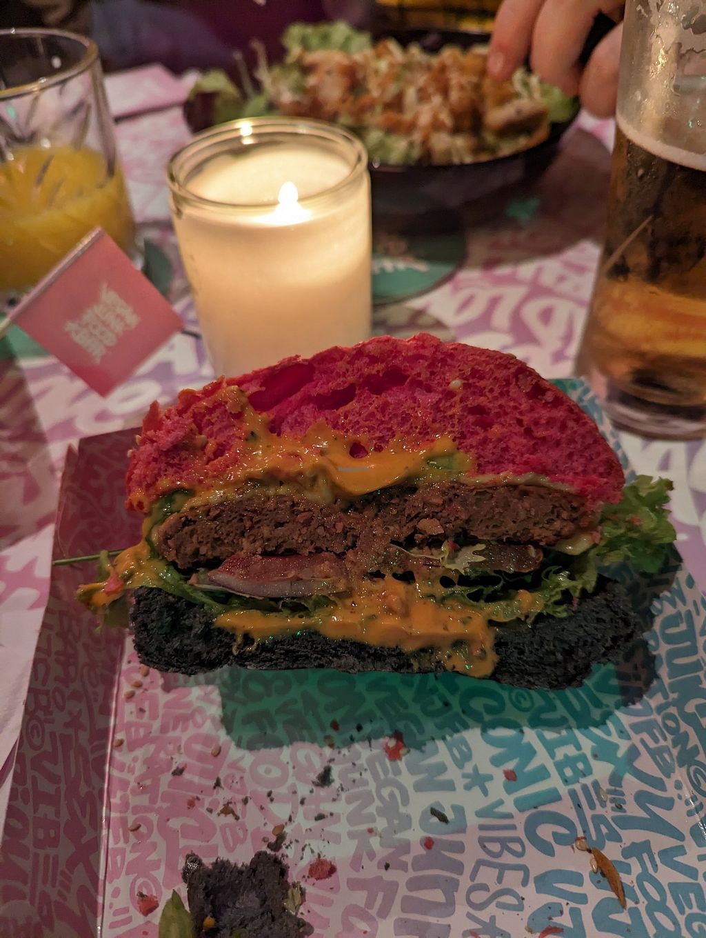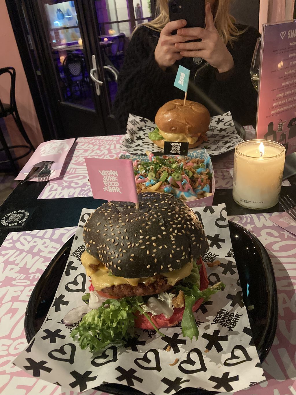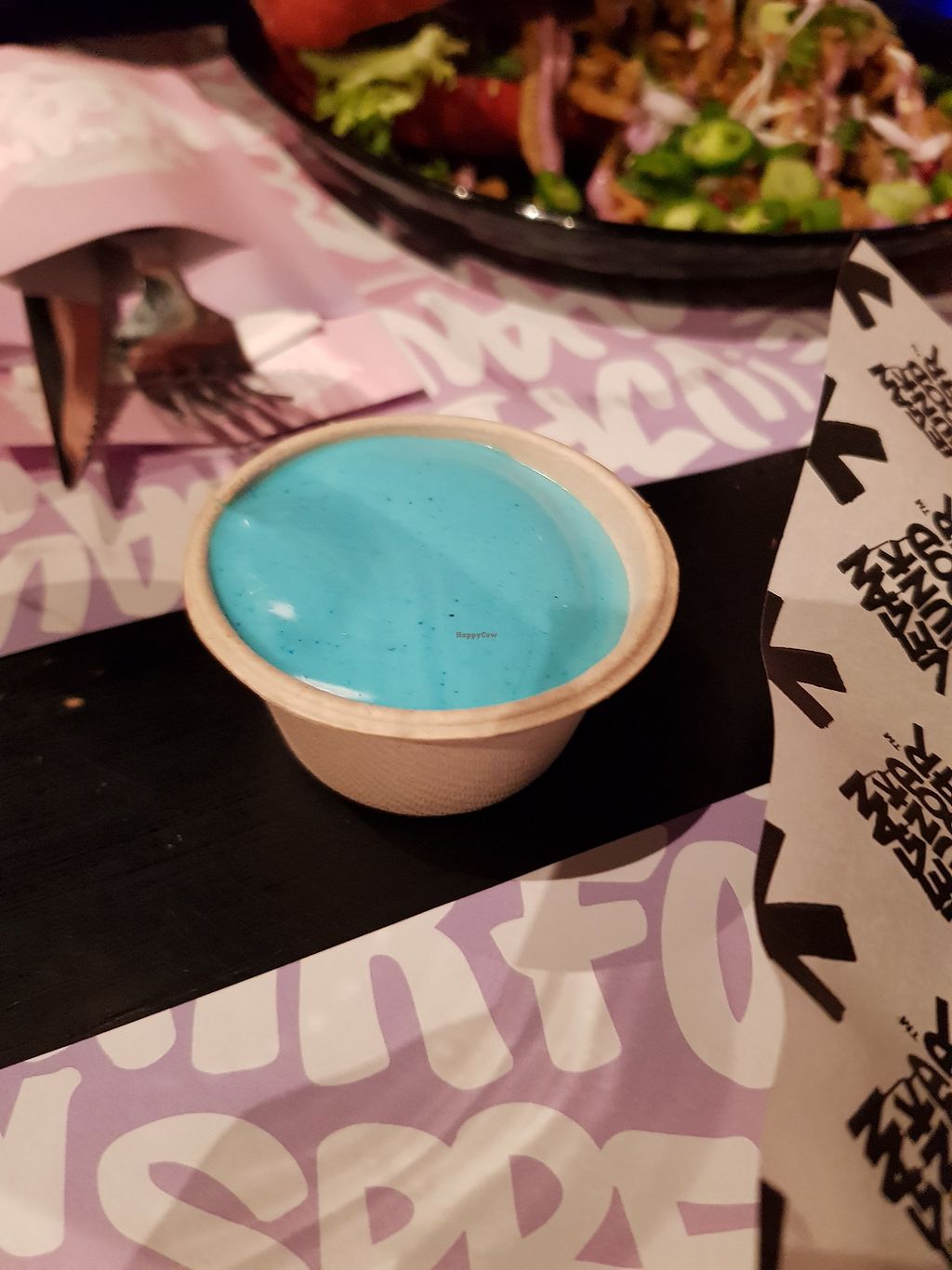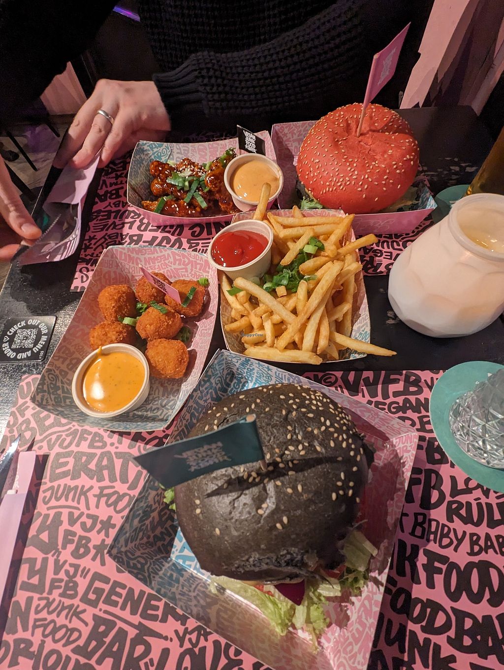 The pink garlic mayo on the onion rings - delicious #Veganuary