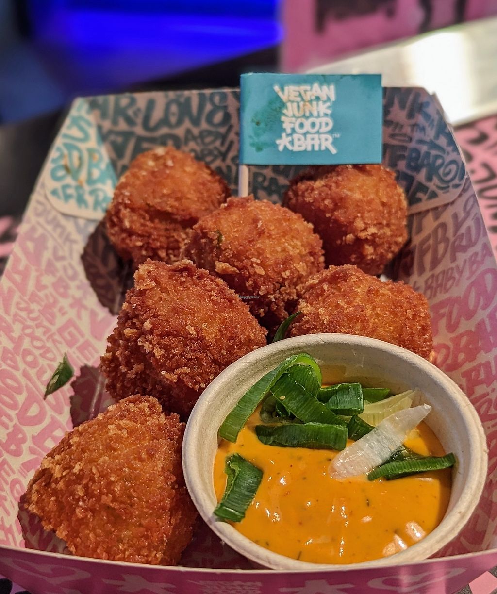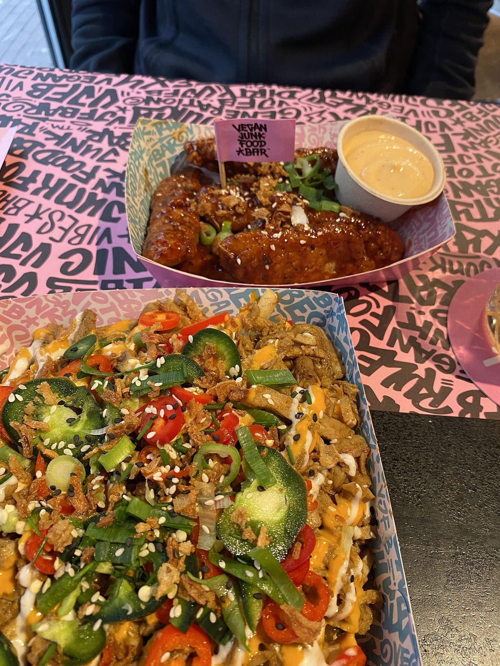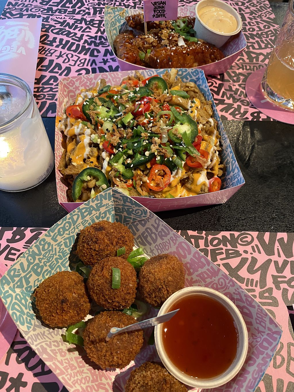 Crunchy pnut Thai betterballs and fries with kebab, cheesey sauce and …
