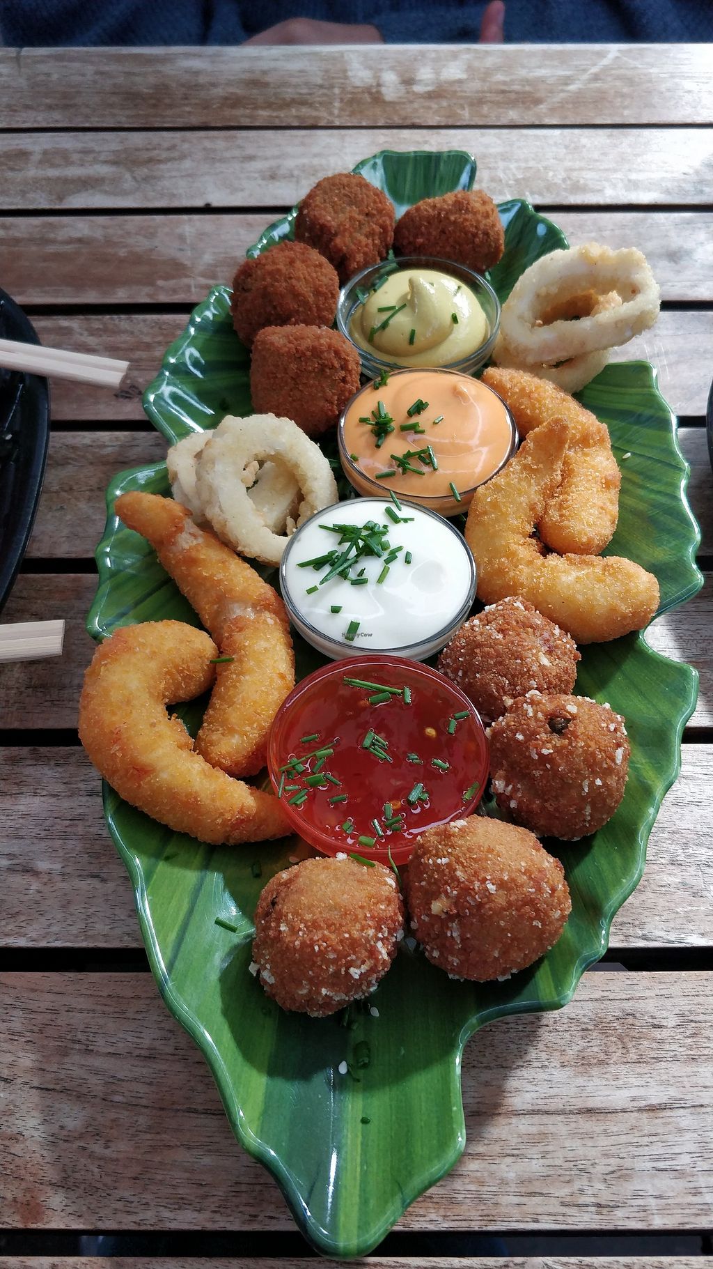 vegan kapsaon, shrimp and coconut bitterballen