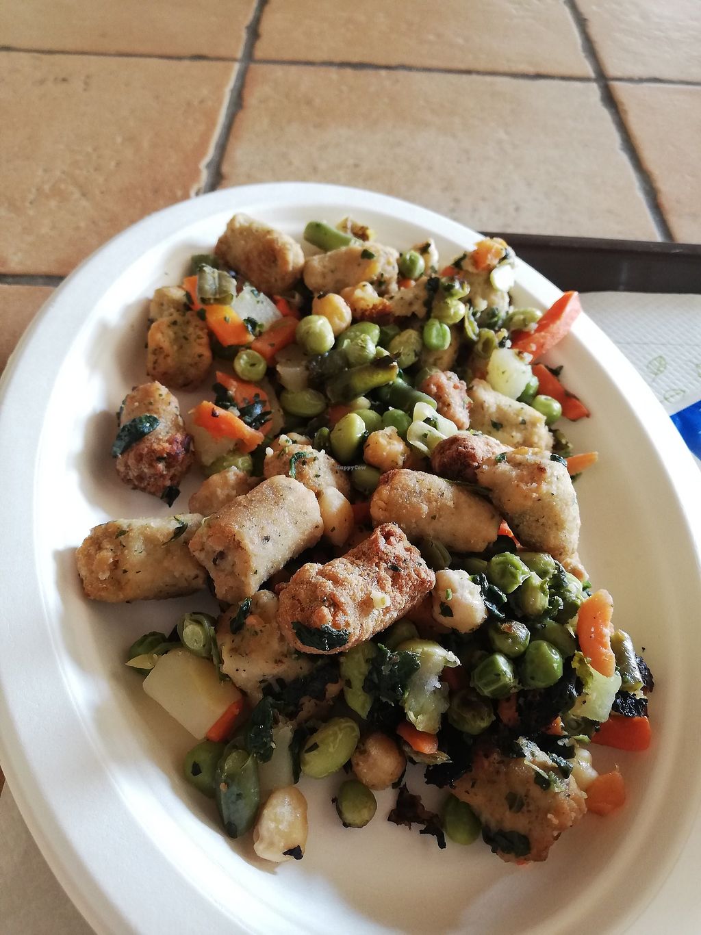 Rice with mixed veggies, chickpeas, black beans, edamame beans, and pu…