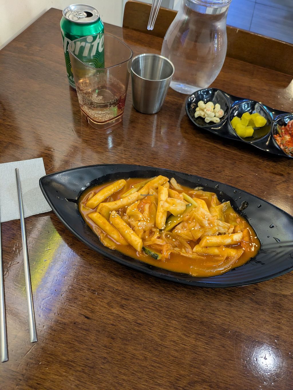 We had the dumplings and rice cake soup and the chicken. Both tasted good! Especially the chicken! Liked the side dishes too.