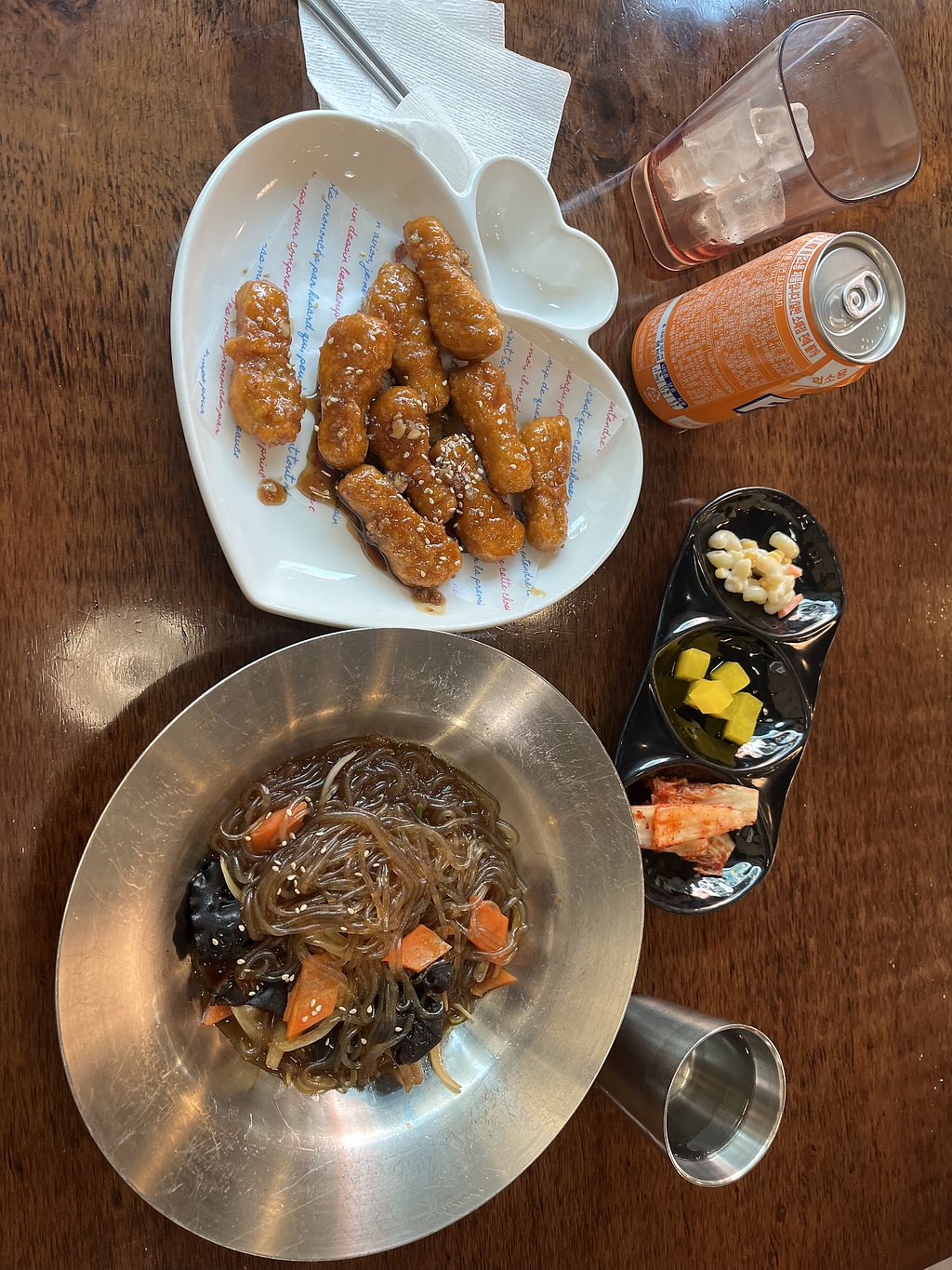 Bulgogi, garlic and spicy fried chicken, meat dumplings