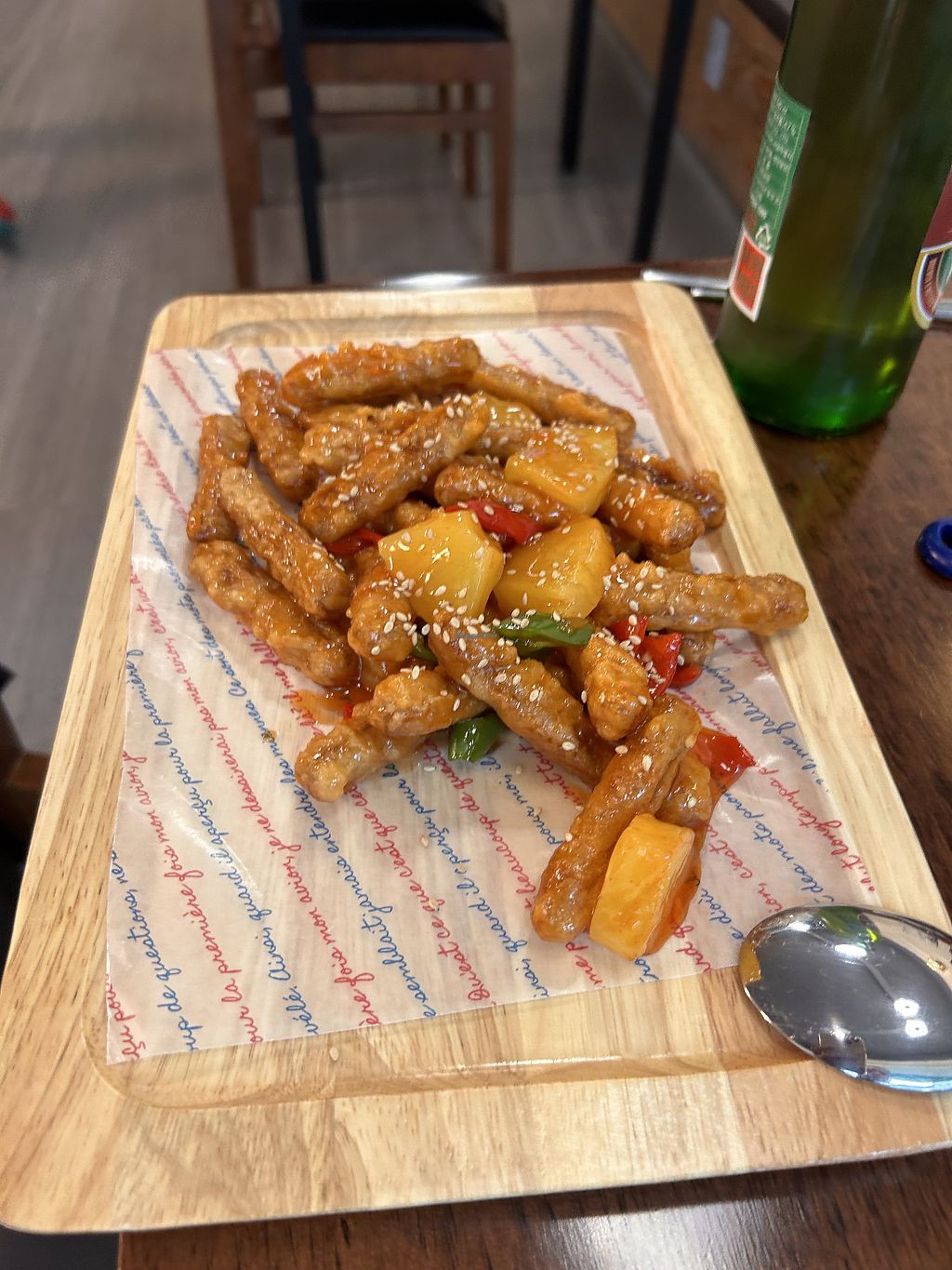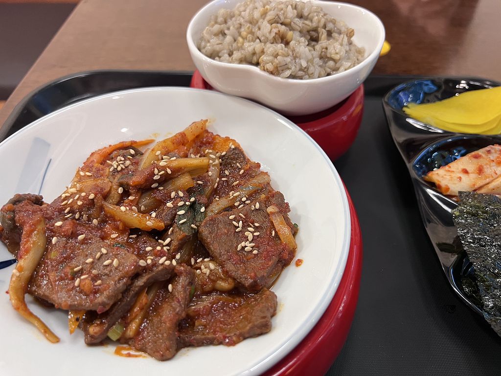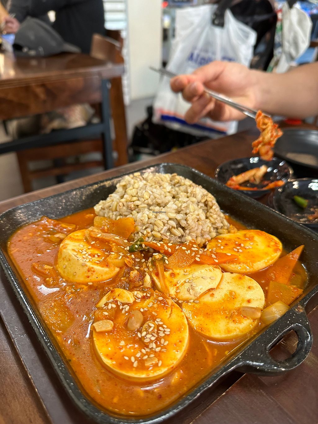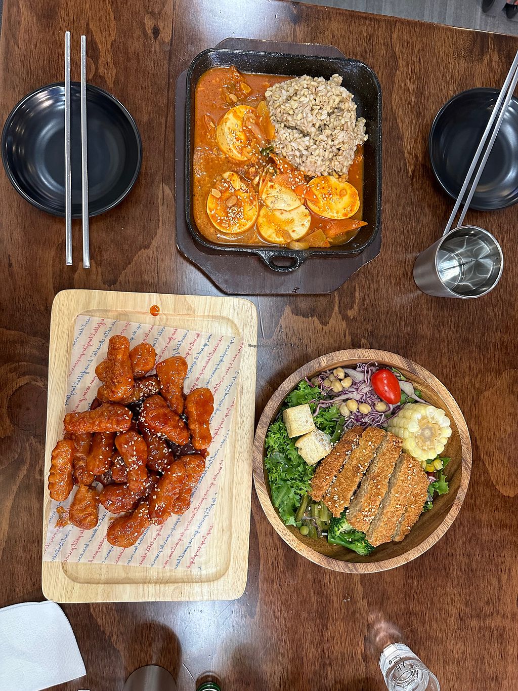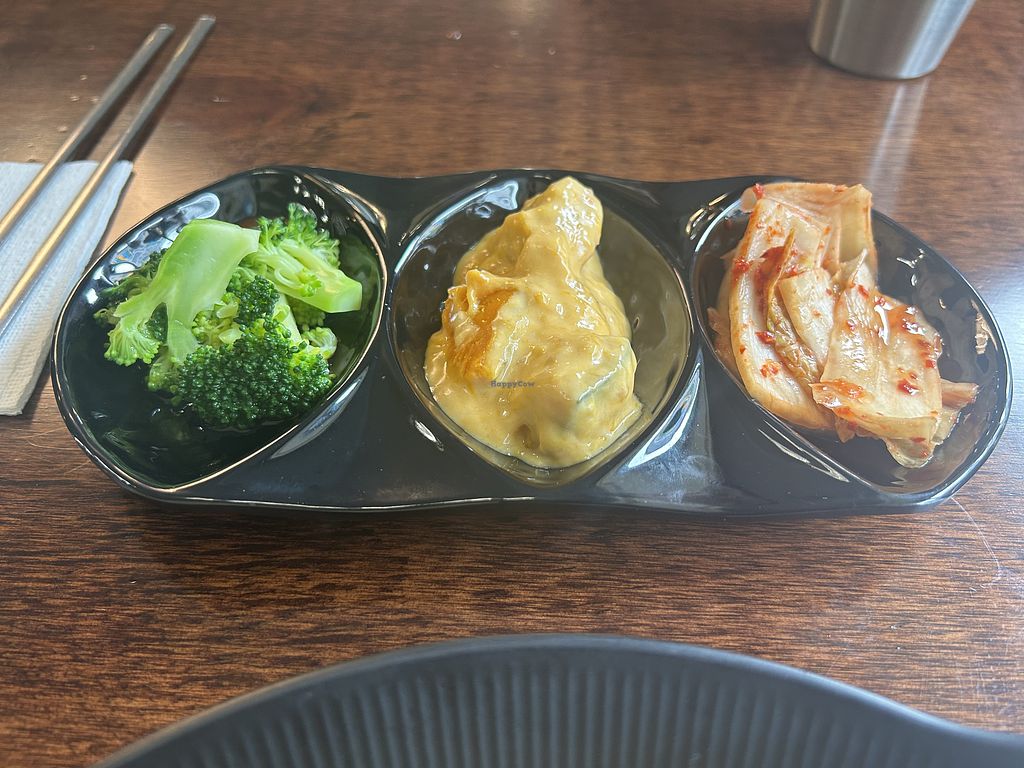 Broccoli, pumpkin and kimchi banchan (side dishes)