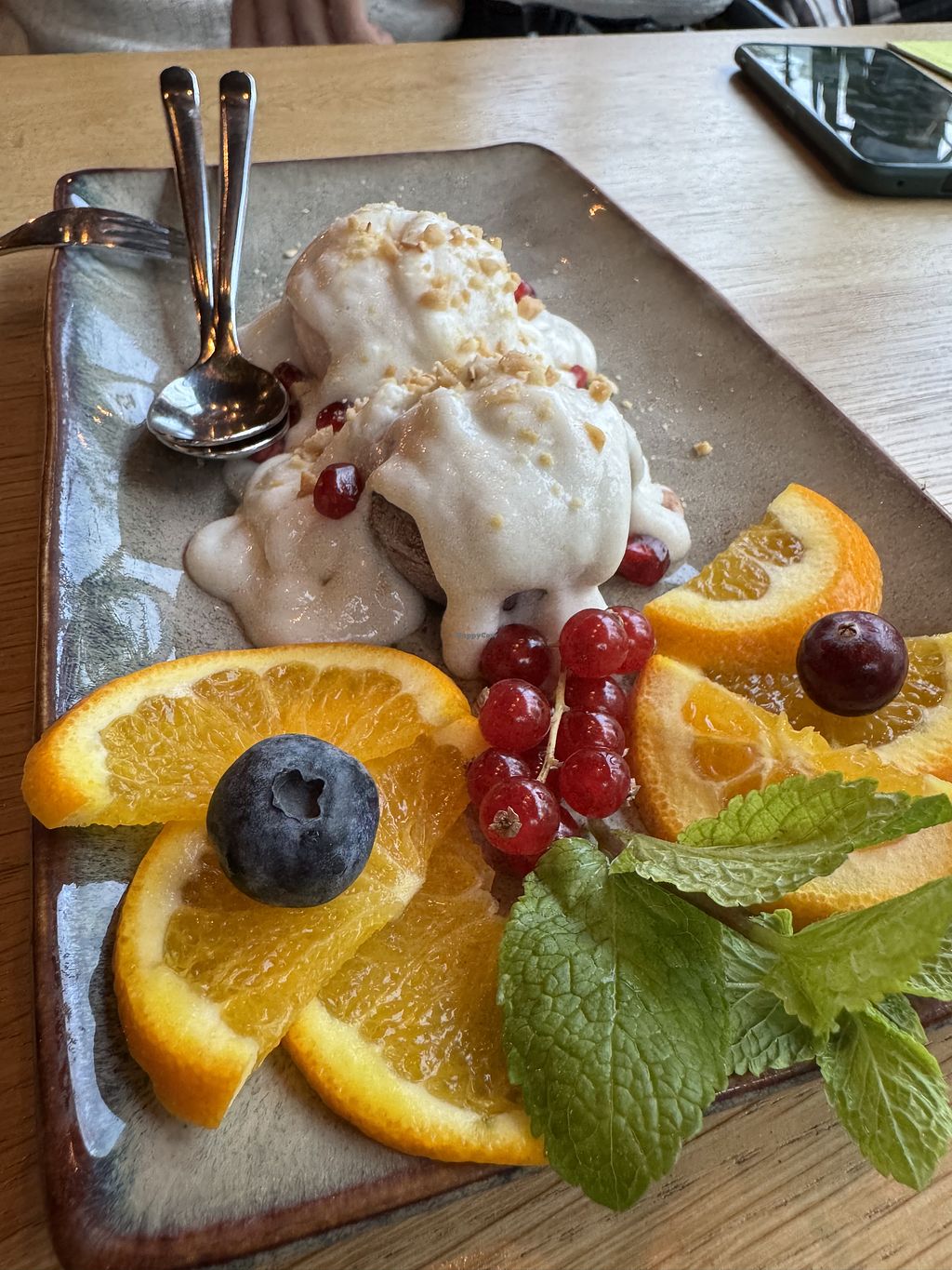 Sehr gute Auswahl sehr leckerer Vor-, Haupt- und Nachspeisen, alles vegan. Die Portionen sind so bemessen, dass man wahrlich keine Angst vor den Verhungern haben muss. Netter Service.
