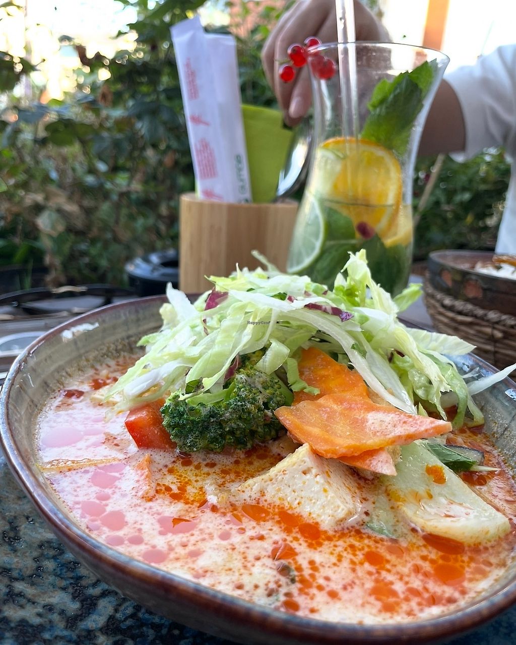 Das Essen war toll, ein Augenschmaus. Ich hatte eine Bowl mit gebratenem Tofu und Avocado, der gut gewürzt war. Die hausgemachten Limonaden waren absolut ihren Preis wert. Das nenne ich fantasievolle Küche !