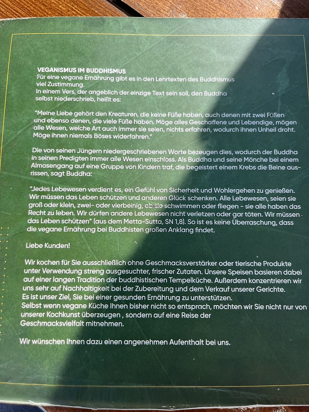 Cons: Die Menü Karten sind schon sehr abgegriffen
