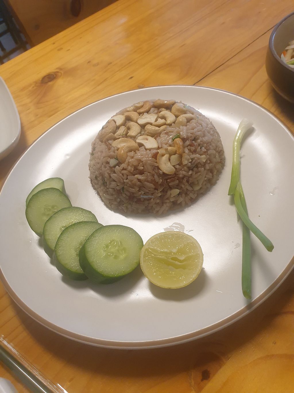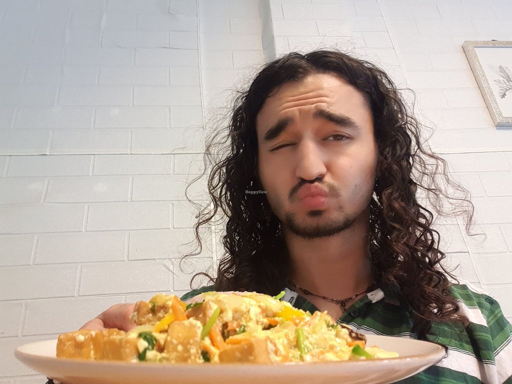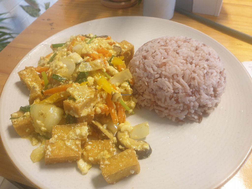 I ordered tofu fried rice with cashew nuts and sweet potato fries, but was very hard to decide as they have very good options in the menu (also with very realistic pictures so it's easier to get an idea of what you are getting). The portion was more than enough and price very reasonable. Loved the ambience of the place, we has a delightful visit from their cat and he ended up sitting next to us while we were enjoying our meal. Waitress was very nice and helpful (very cute as well i must say). Thank you for everything! Will come back for sure!
