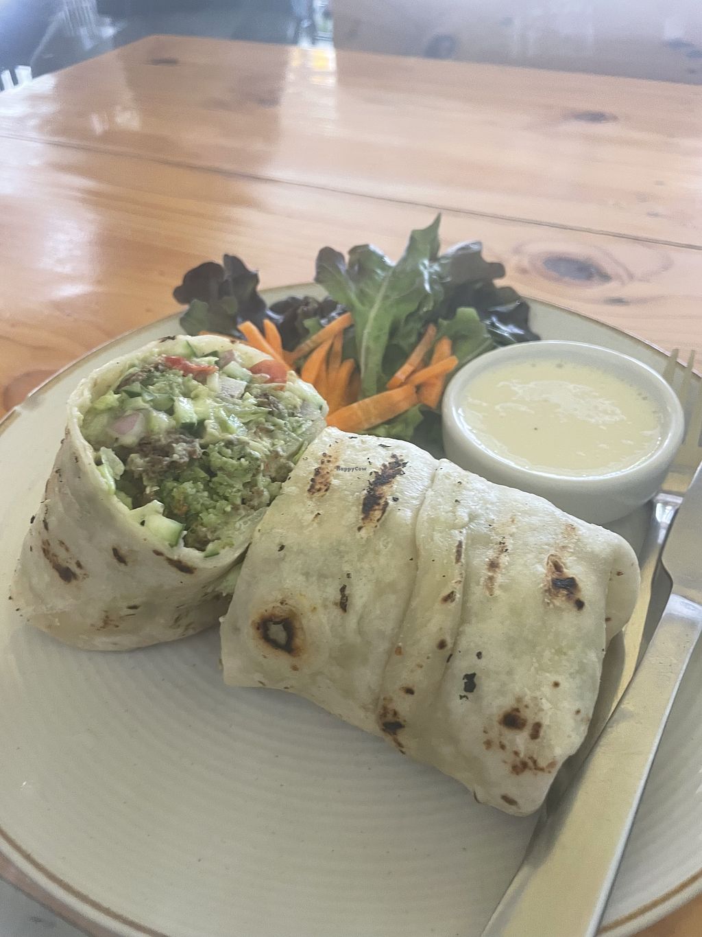I ordered a falafel and Hummus wrap - it was massive. I also ordered fries and a passion fruit soda - so refreshing! good food - little expensive. But it's a completely vegan restaurant - that's a plus.