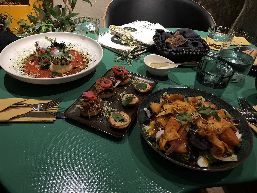 Avocado something pasta and naked burger