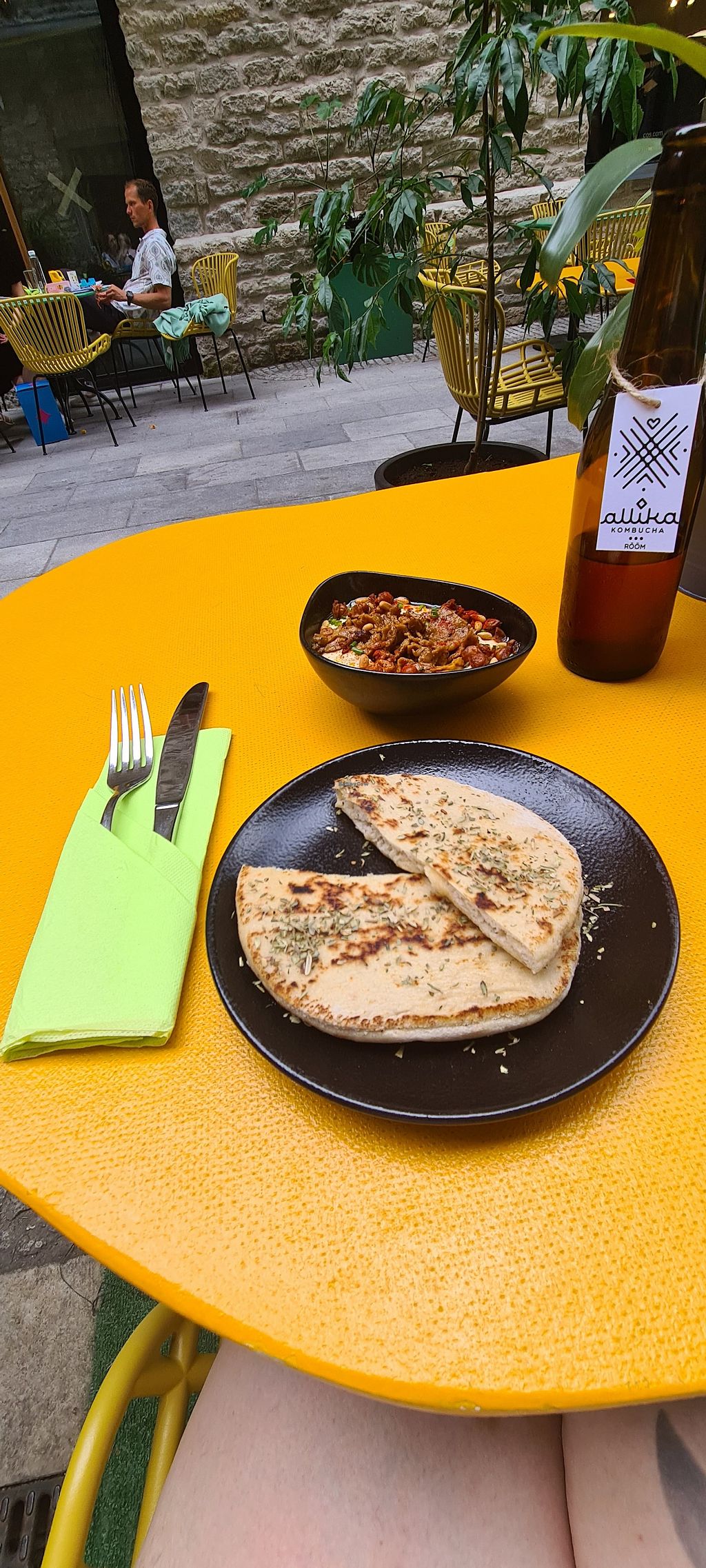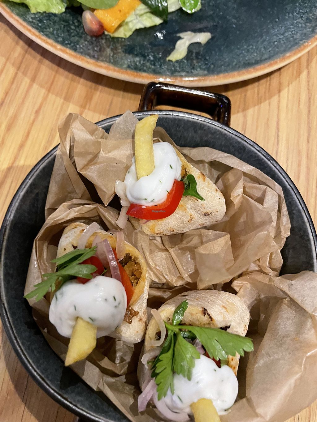 starters (feta cheese with gluten free bread chips and mini gyros)