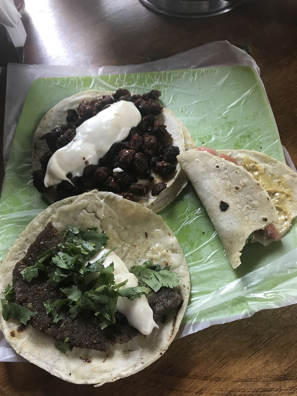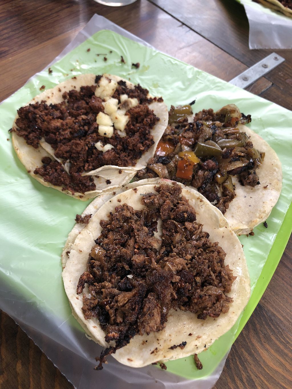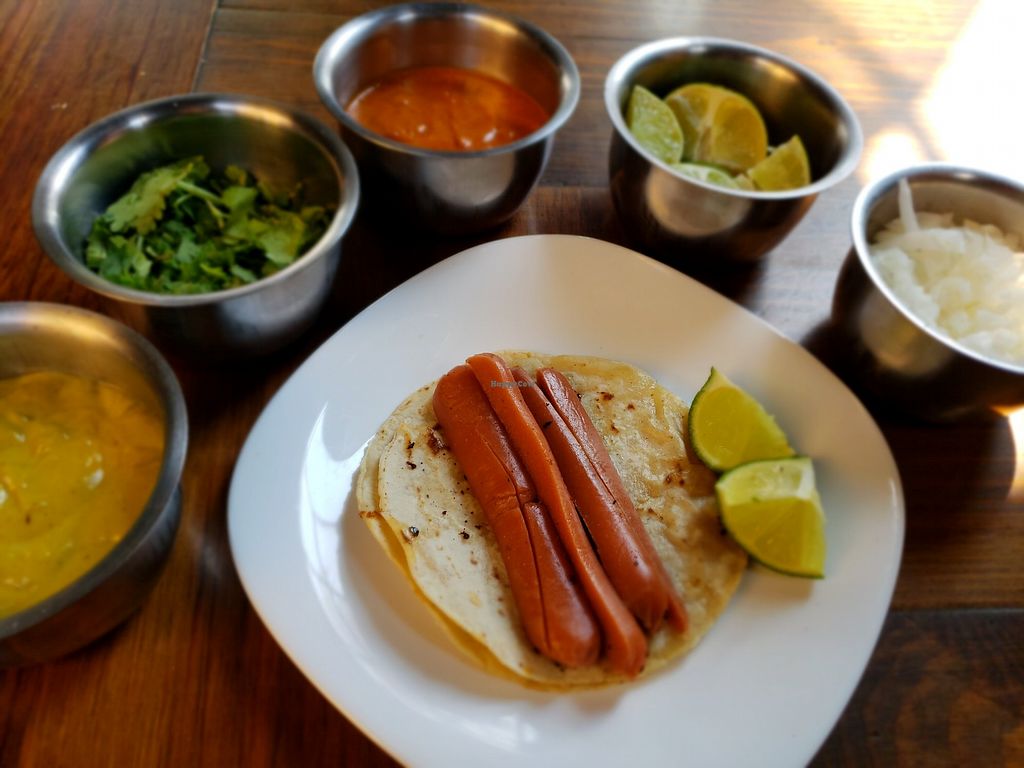 Taco con seitan y taco con milanesa, y taco con salchicha