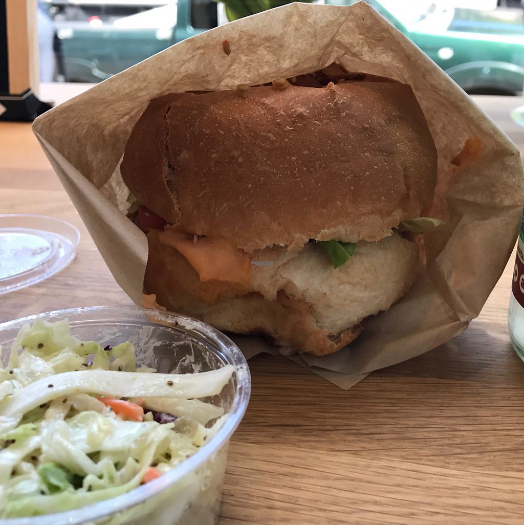 Delicious vegan comfort food - including chicken salad sandwiches, tuna, burgers etc. team are friendly and down to earth. Doesn’t feel pretentious like some sf places. Highly enjoyable!