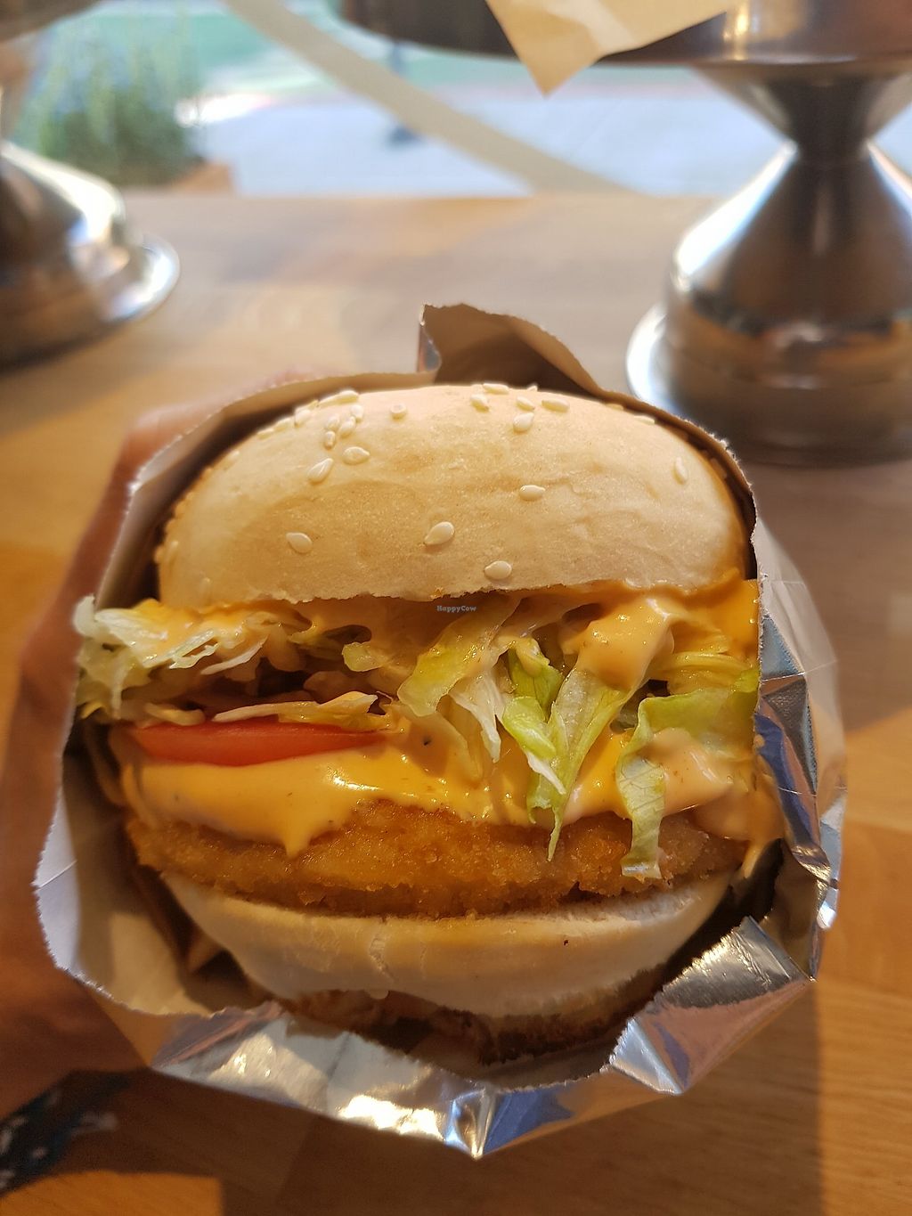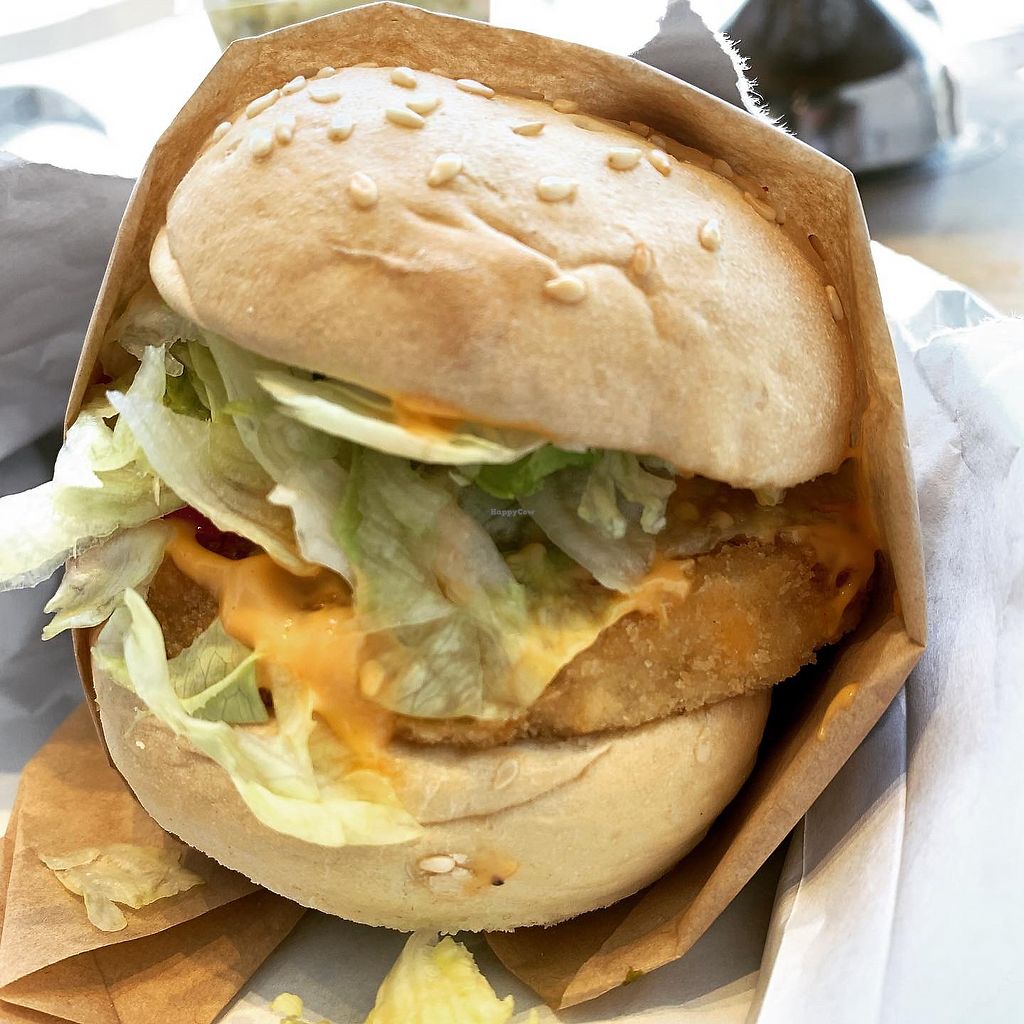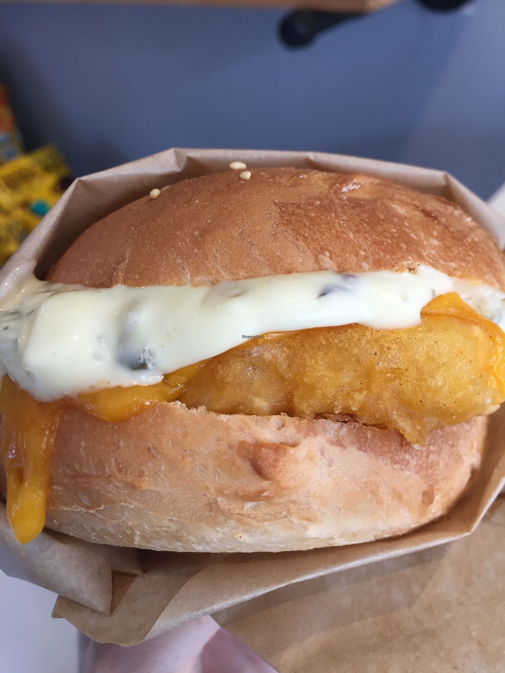 it’s basically reheated frozen food. we had three burgers: beef tip, crispy chicken and the fish. it’s on a chewy reheated roll with a flavorless dressing g and iceberg lettuce (all 3 burgers) in a painfully small portion for over $10...if you like fast junk food from the freezer, come here. zero nuance or creativity involved. 3 stars for being vegan...