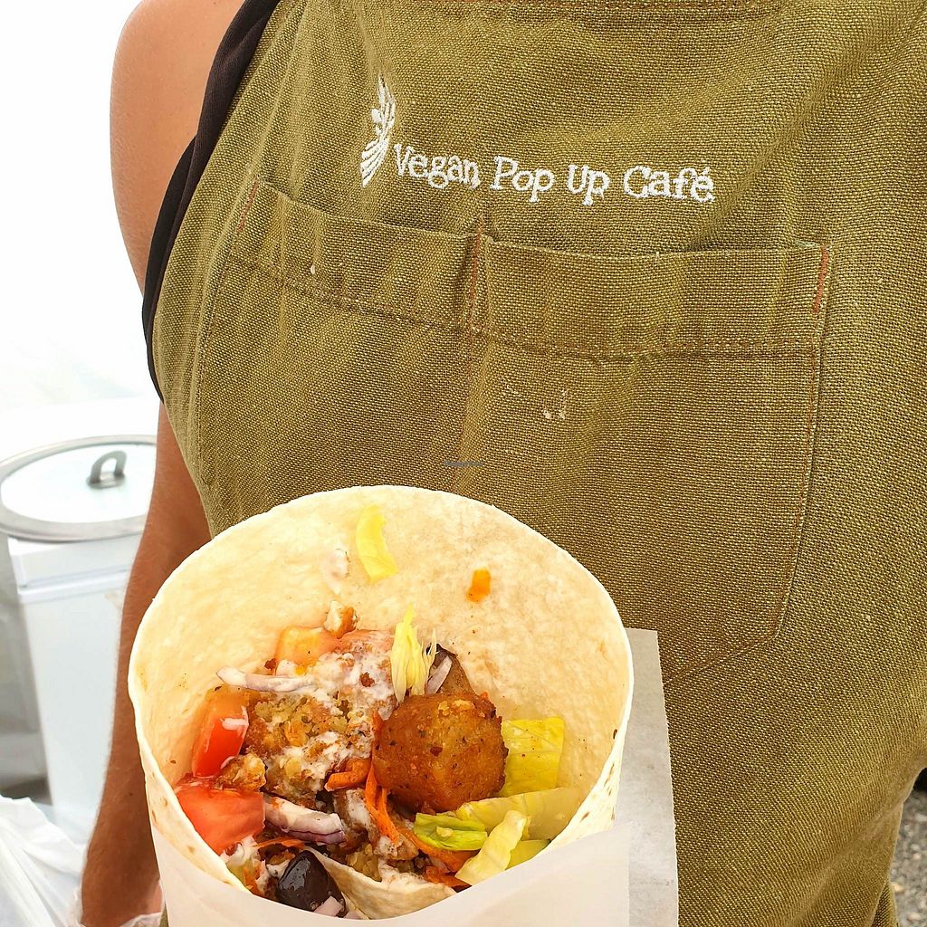 Falafel bowl with homemade lemon garlic tahini, fried eggplant, orange…