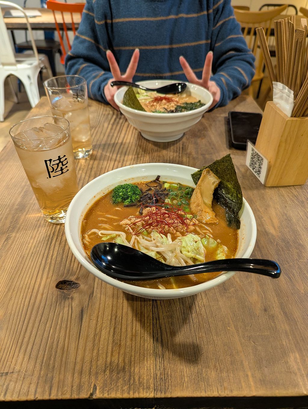 Spicy Ramen in front, Tonkotsu in back