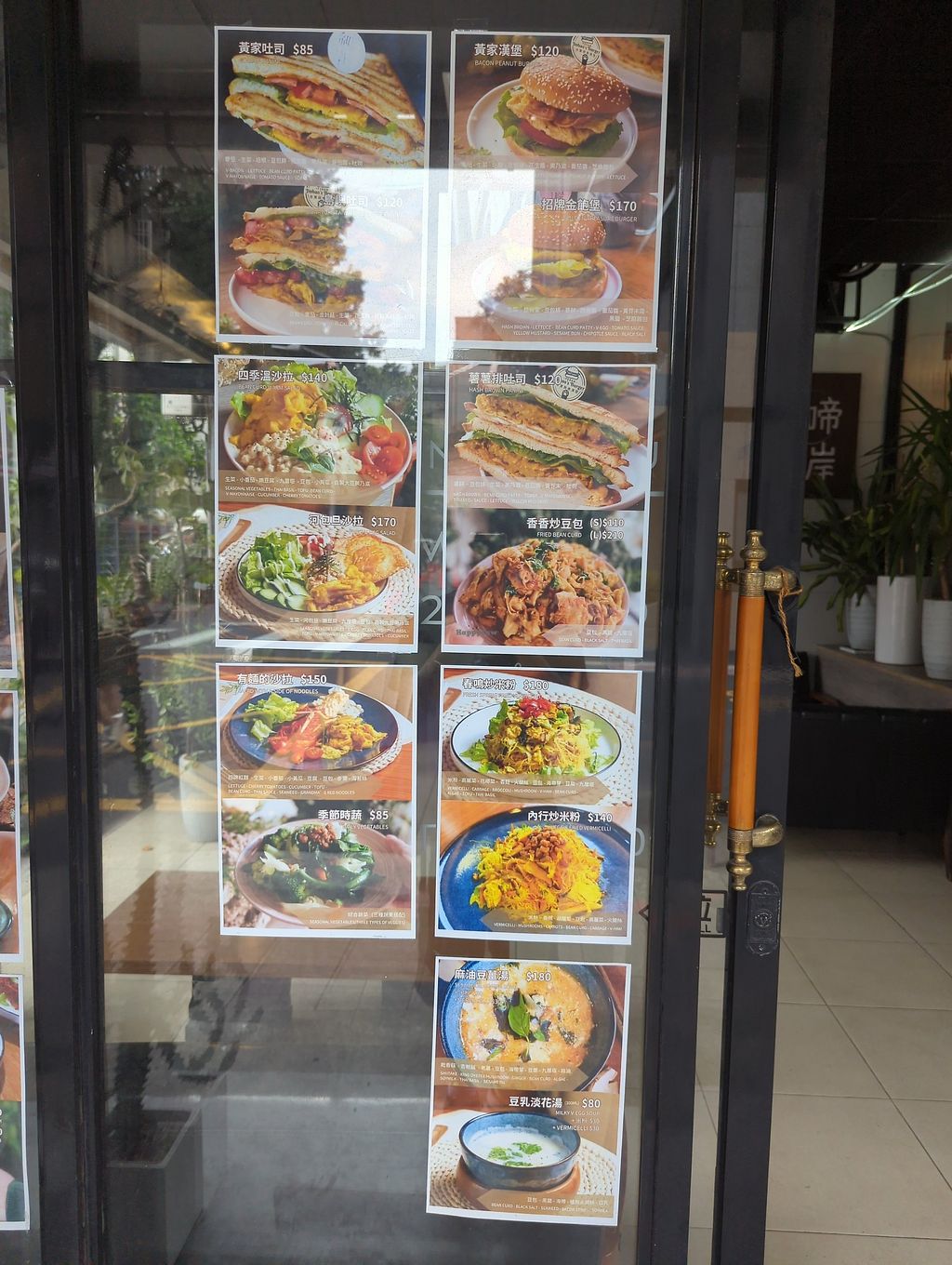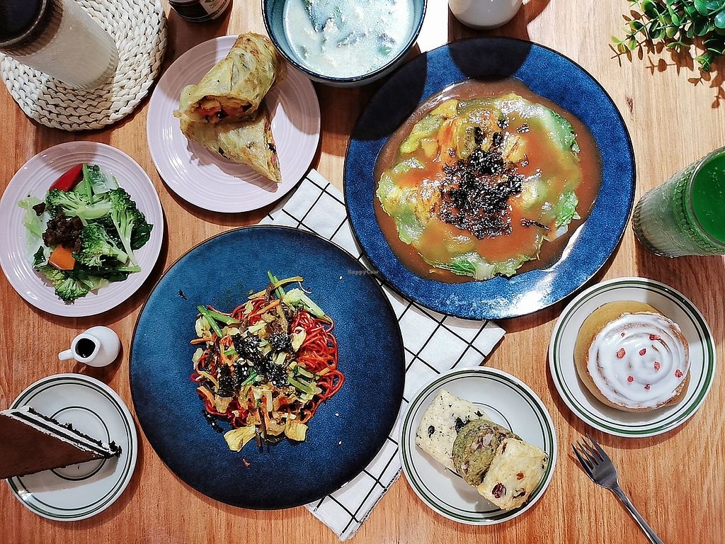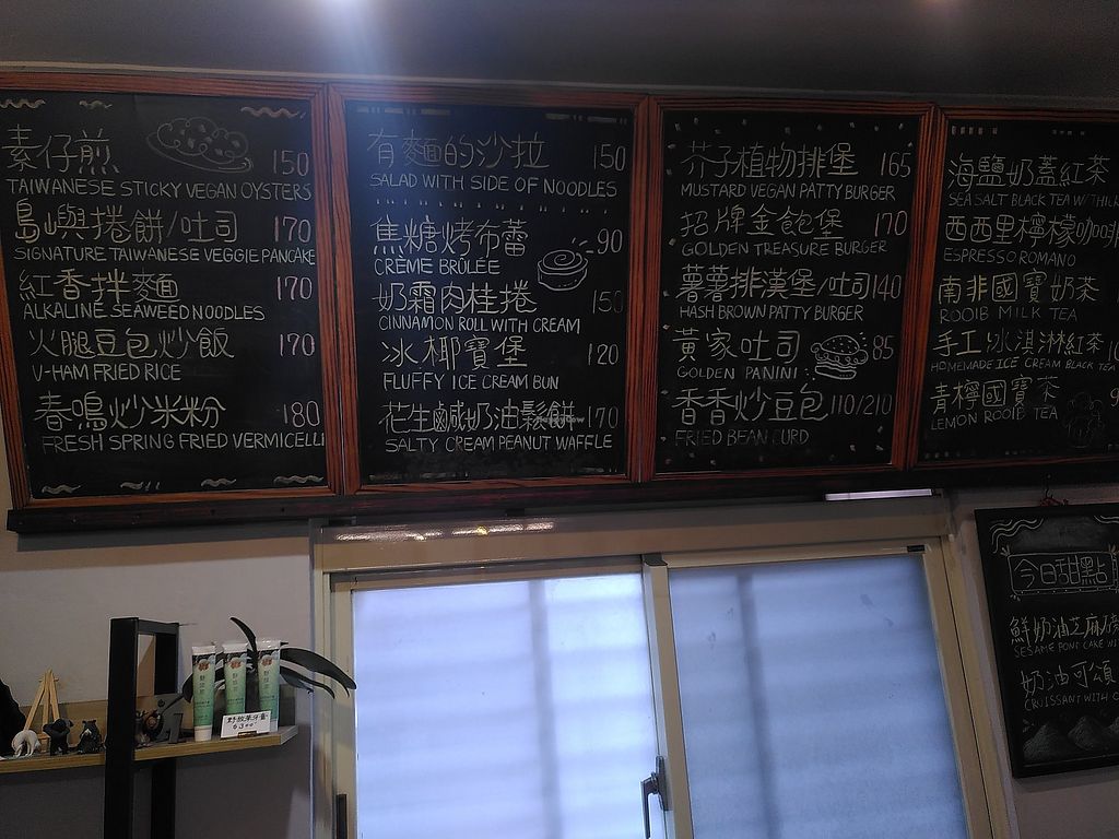 Interesting menu. Local dishes as well as international cuisine. They have vegan ham and vegan egg. Several desserts, scones, waffles, drinks with coffee or chocolate. You can find Taiwanese breakfast pancakes here.