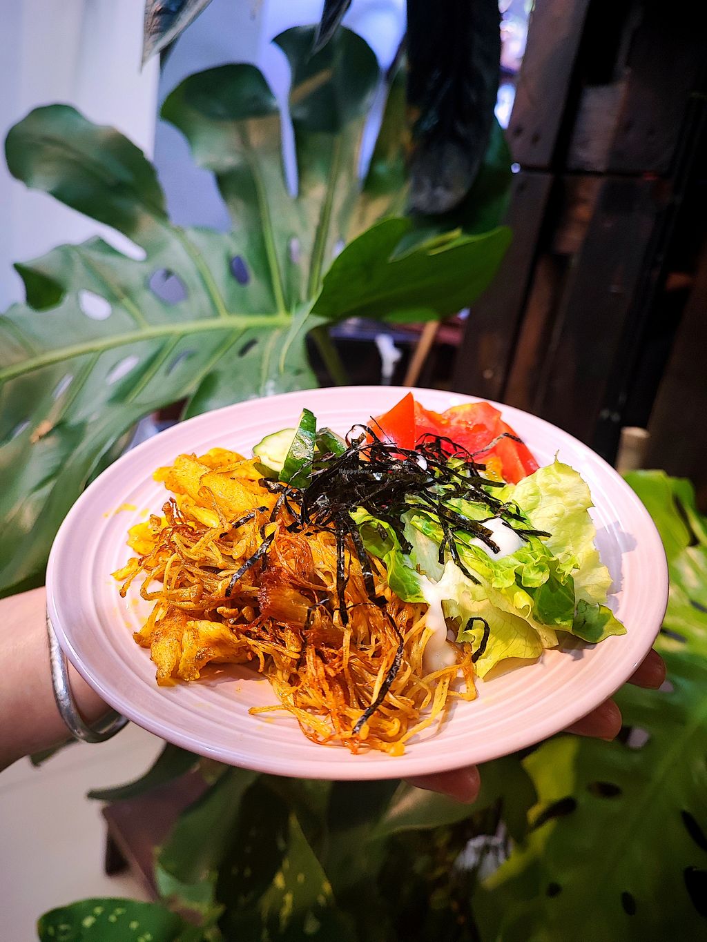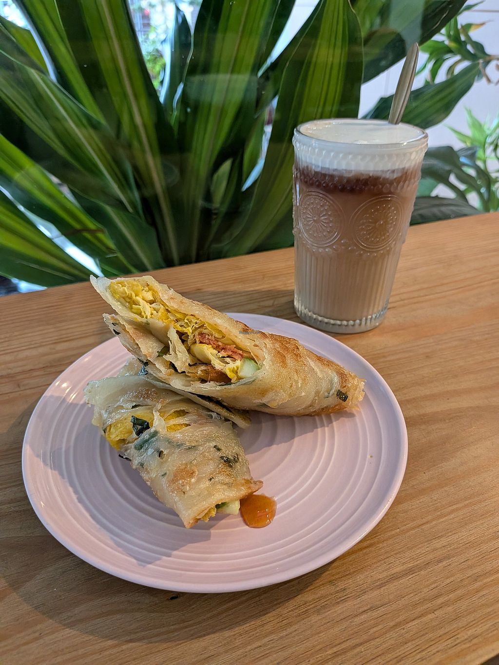 I didn't realize there's also a vegan hair salon inside the same cafe; I love that. The vibes are chill and cute. The food is yummy! I tried the Taiwanese breakfast scallion pancakes and a milk tea with oat cream. I would definitely like to come back to try more. 😋